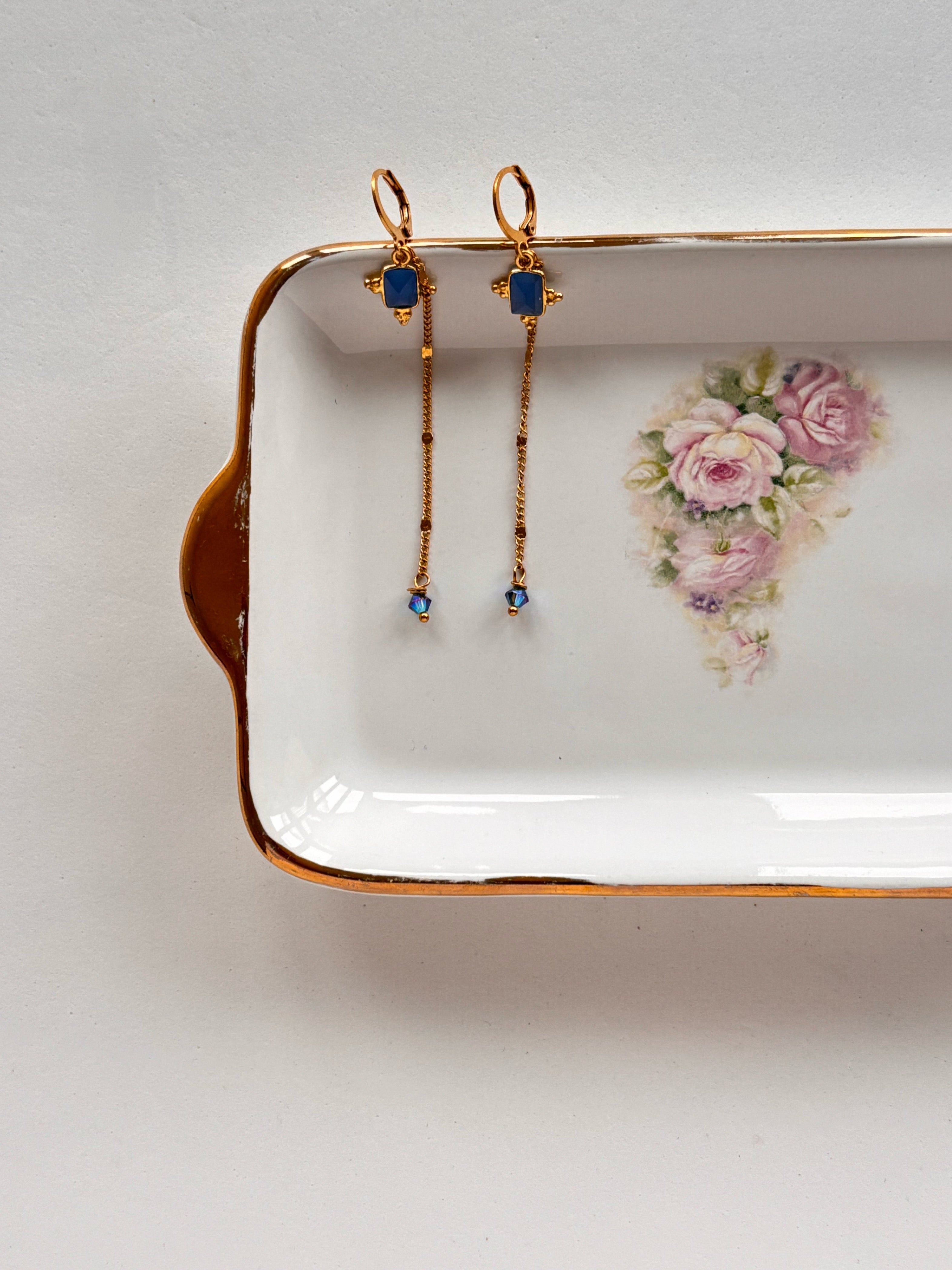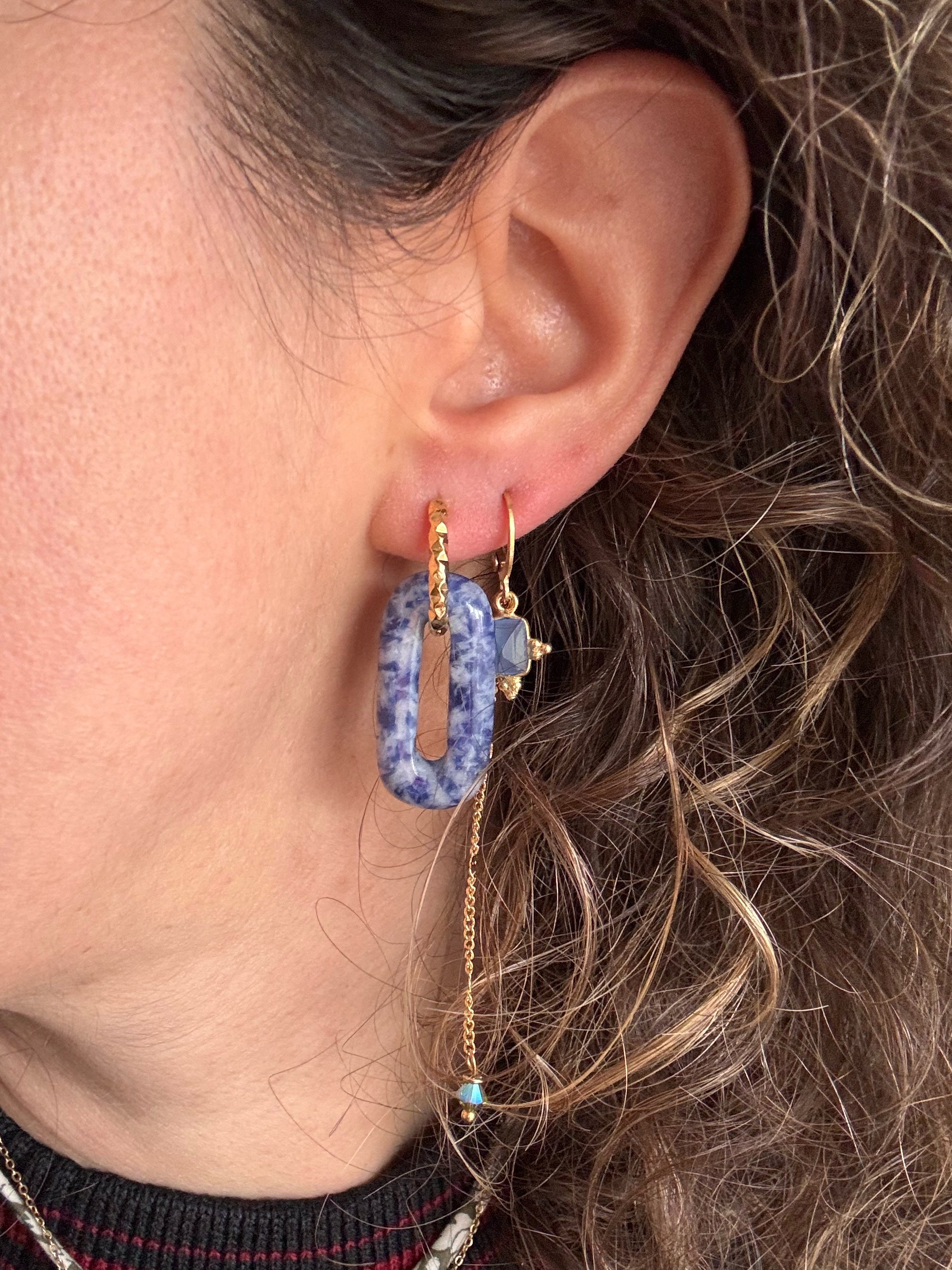 Grazie alle catenine sottilissime dal design simil monetine, arricchite da un piccolo Swarovski sul fondo e da una medaglietta indaco intenso, con incastonatura in argento indiano.