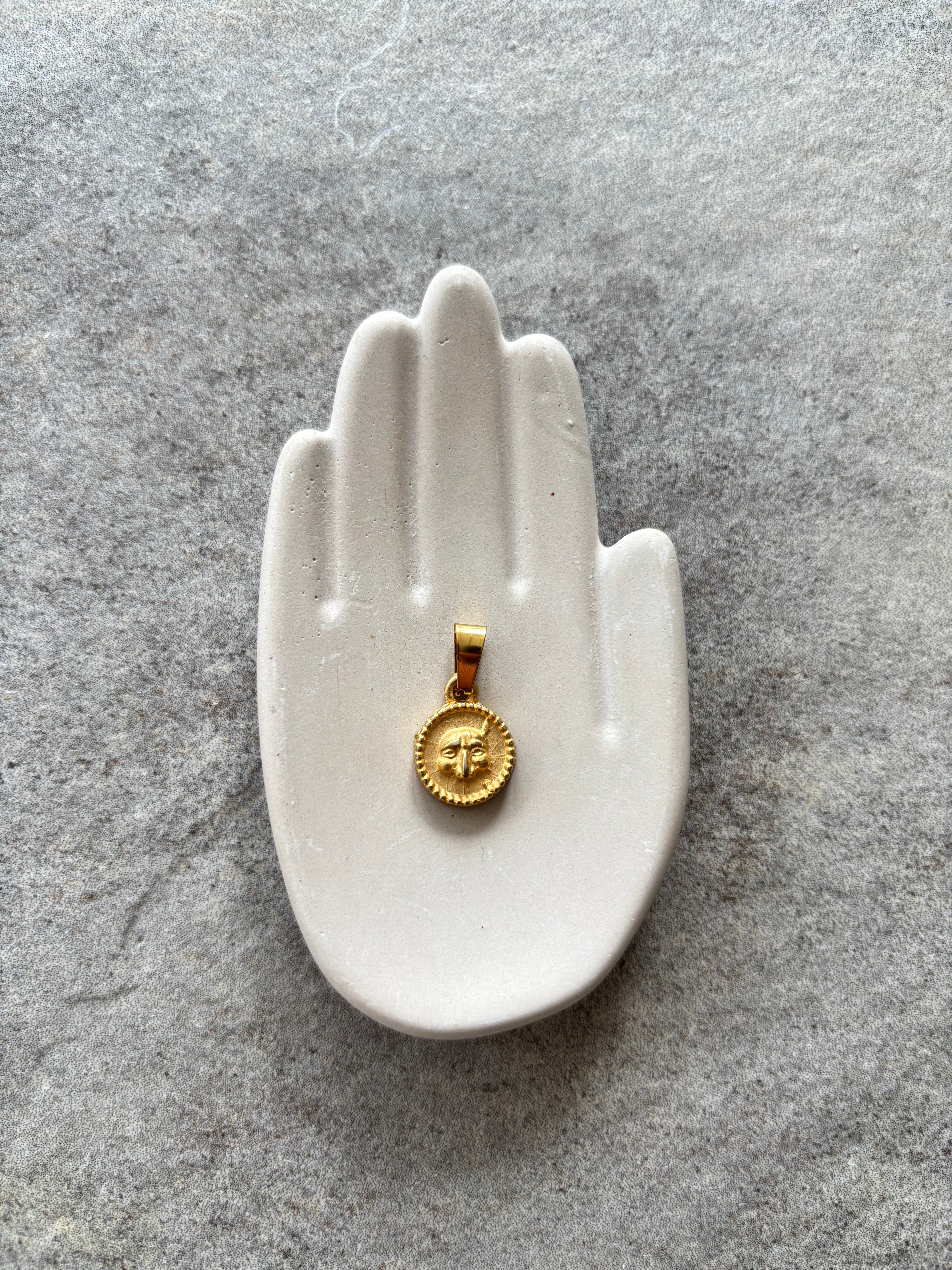 Medaglietta effetto anticato con maschera di Pulcinella, classico simbolo teatrale, rappresentante il popolo napoletano, in tutta la sua sfrontatezza e voracità.
