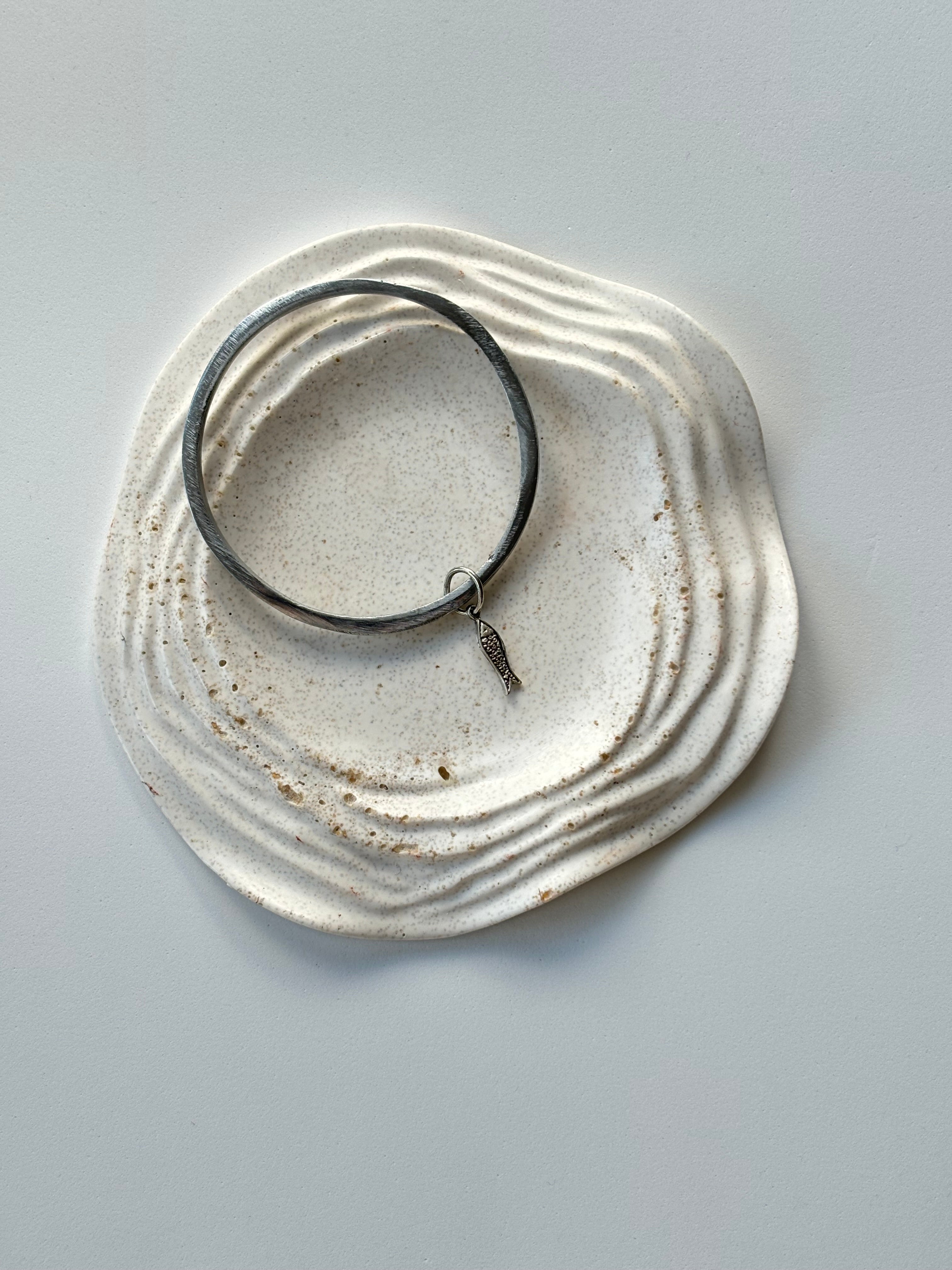 Bracciale bangle rigido color argento e pesciolino in zama.