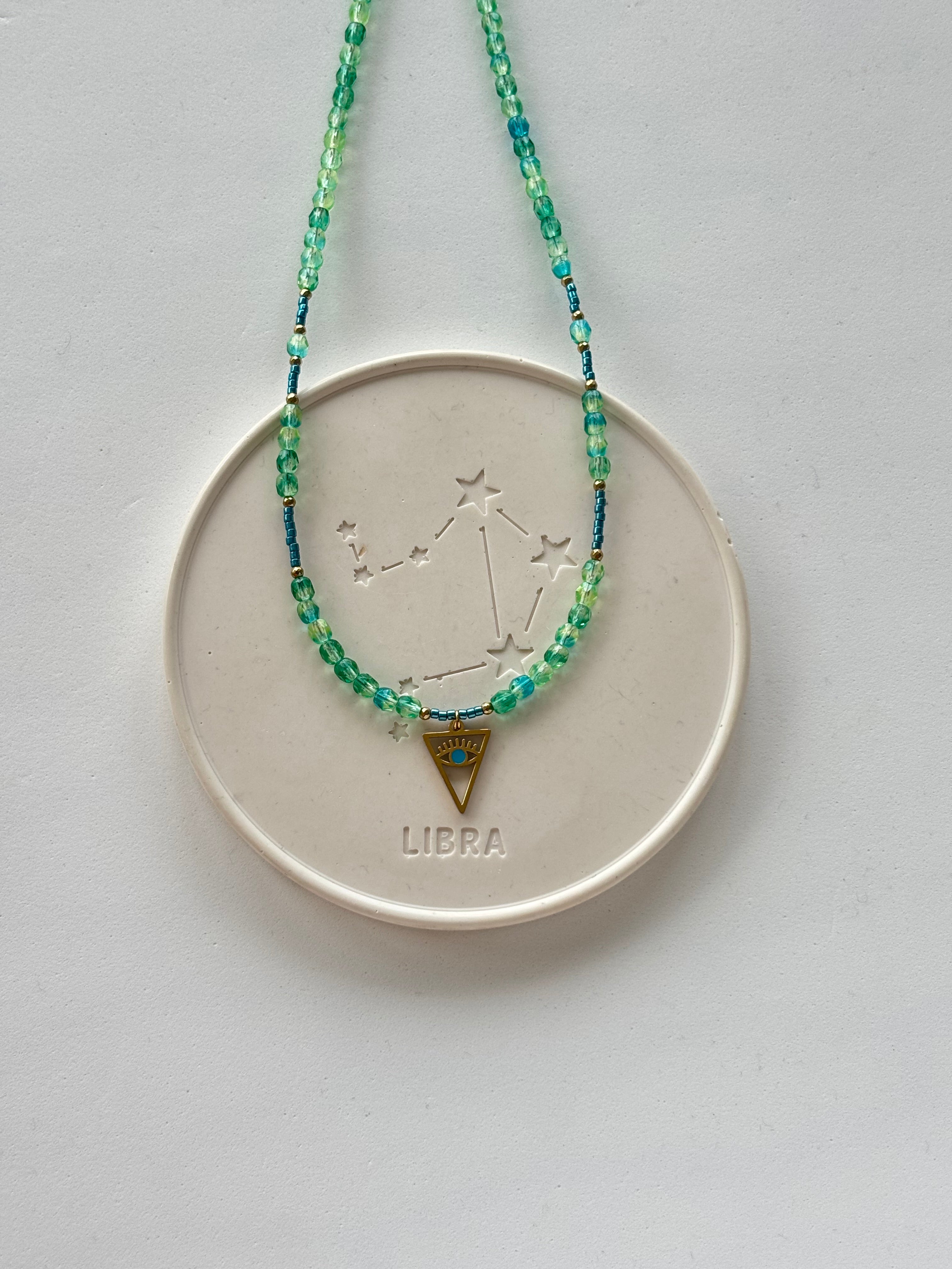 Le sfumature che vedremo nei prossimi mesi, racchiusi in un girocollo: le onde del mare, distese di prati verdi, cieli turchesi.