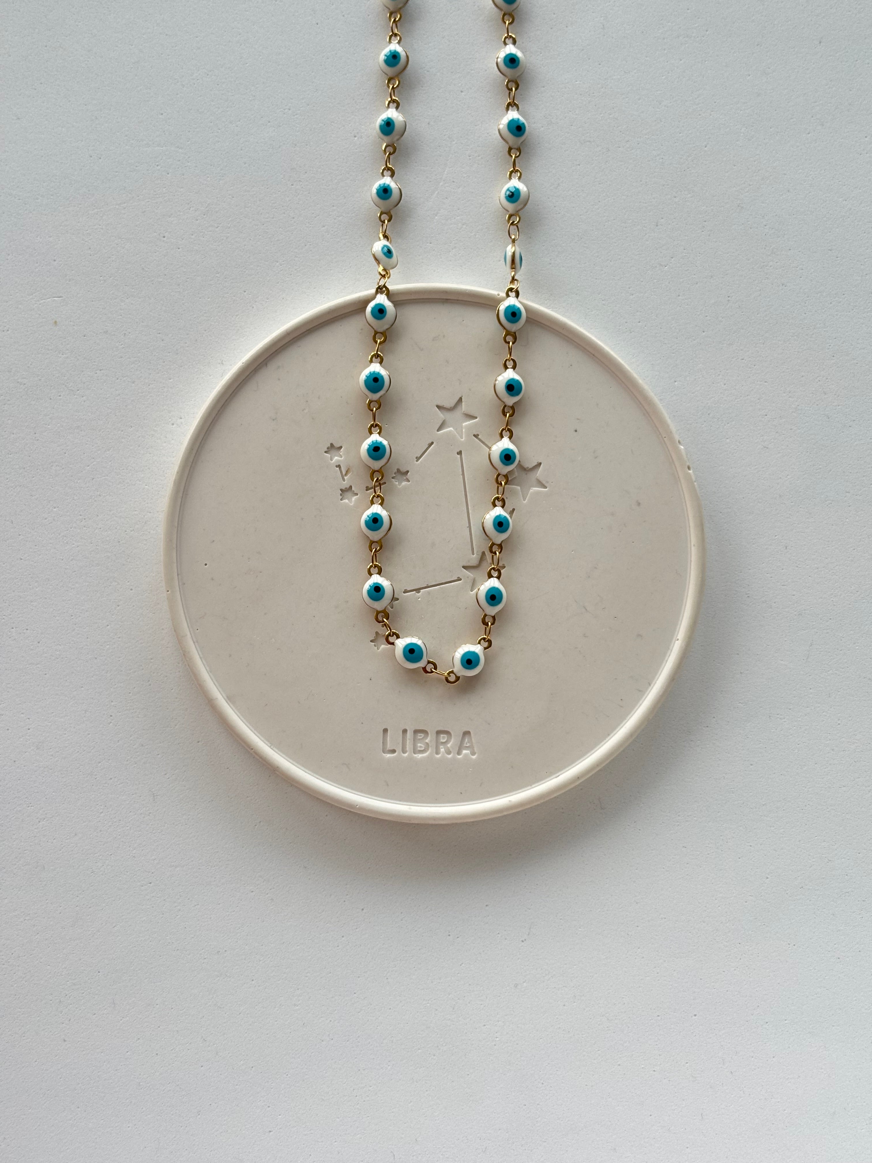 Un mix di semplicità, fascino e misticismo, il tutto all’interno dello stesso girocollo: Dafne, collana smaltata dove l’Occhio Greco è il protagonista e con esso, la protezione contro cattive energie e malasorte.