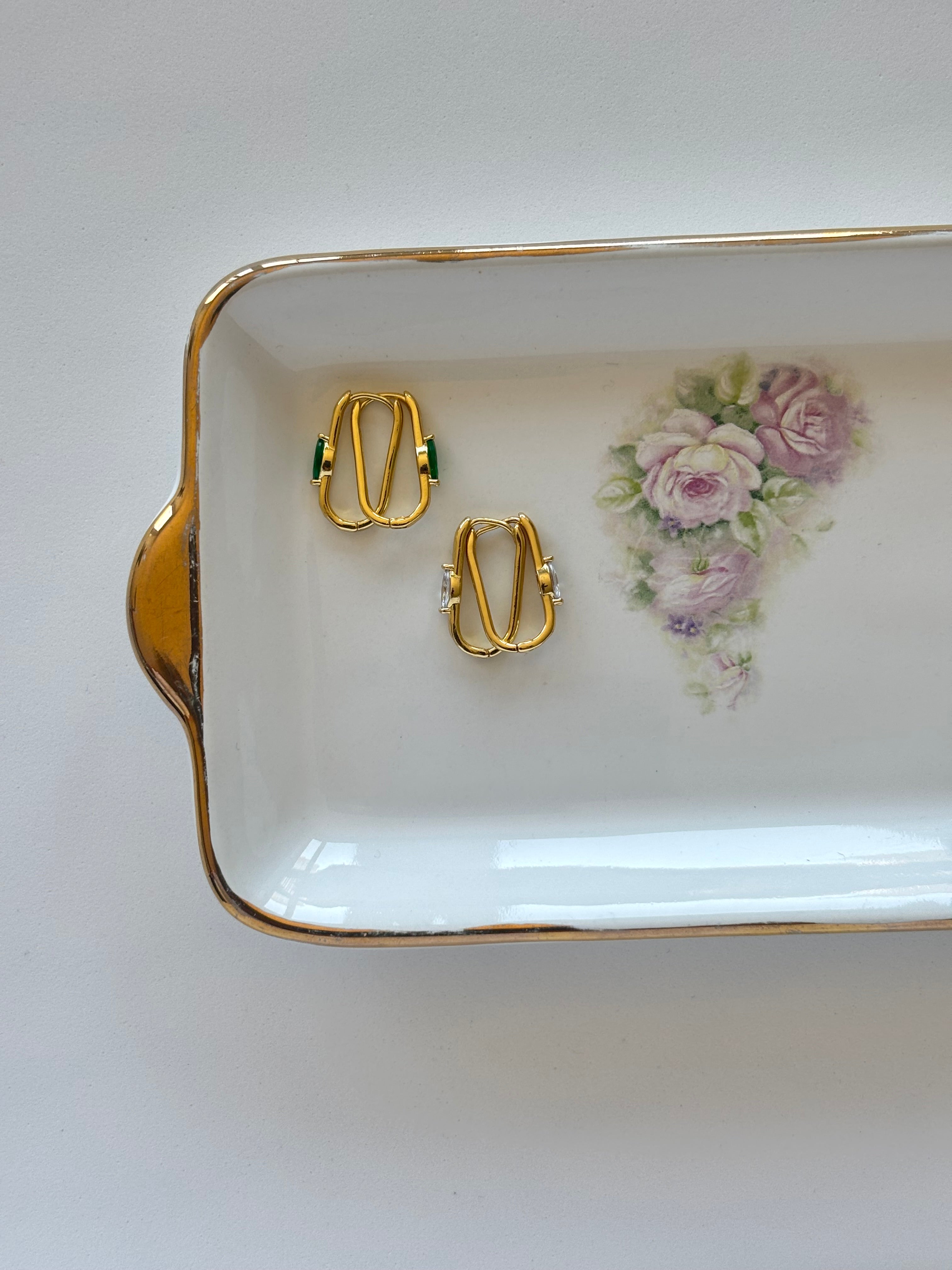 Nati per splendere, grazie allo zircone in vetro al centro di questo paio di orecchini su base in acciaio.