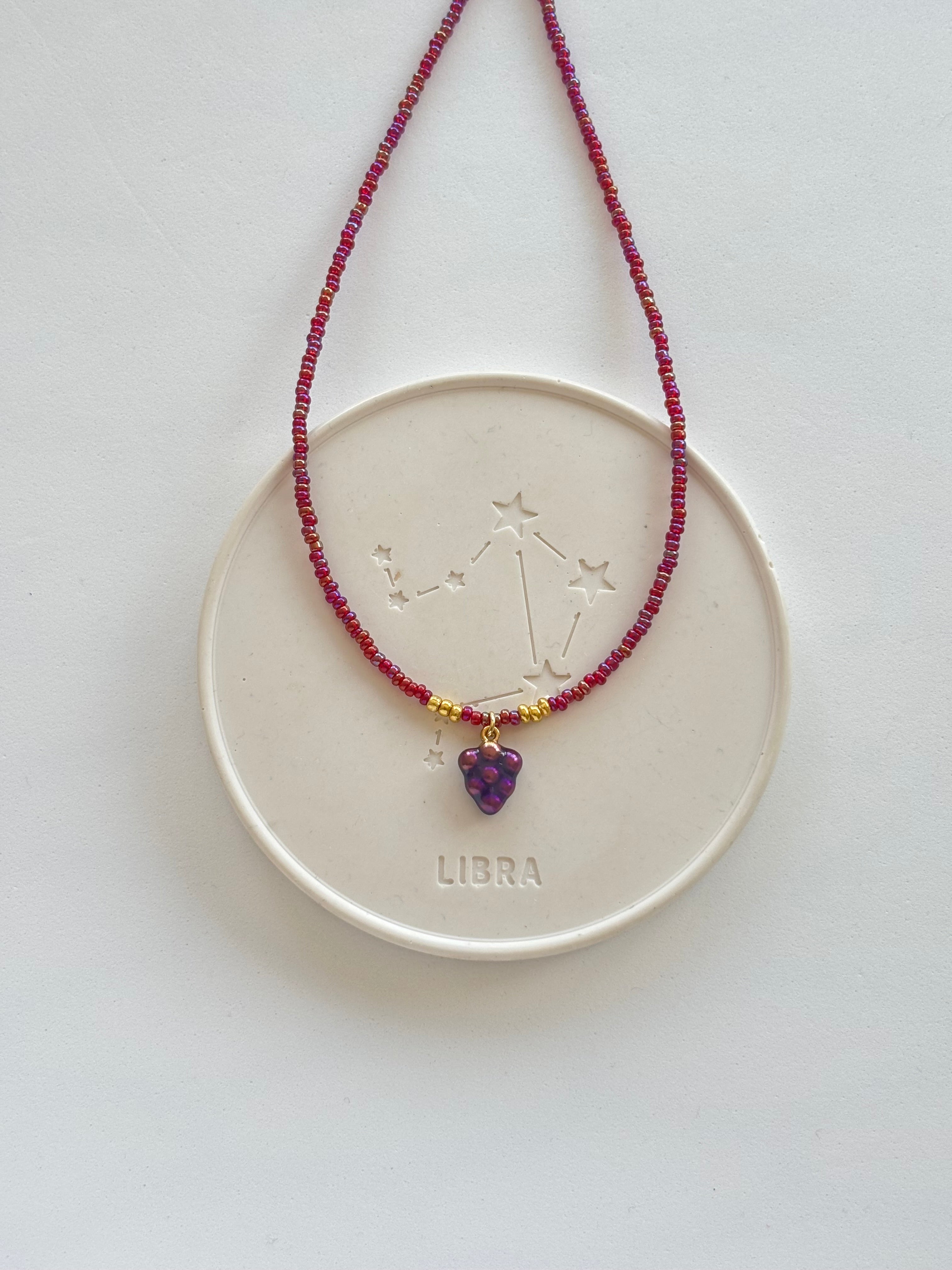 La stagione della vendemmia non è poi così lontana..intanto godiamoci un bel girocollo a tema, su perline rocailles dall’effetto shiny.