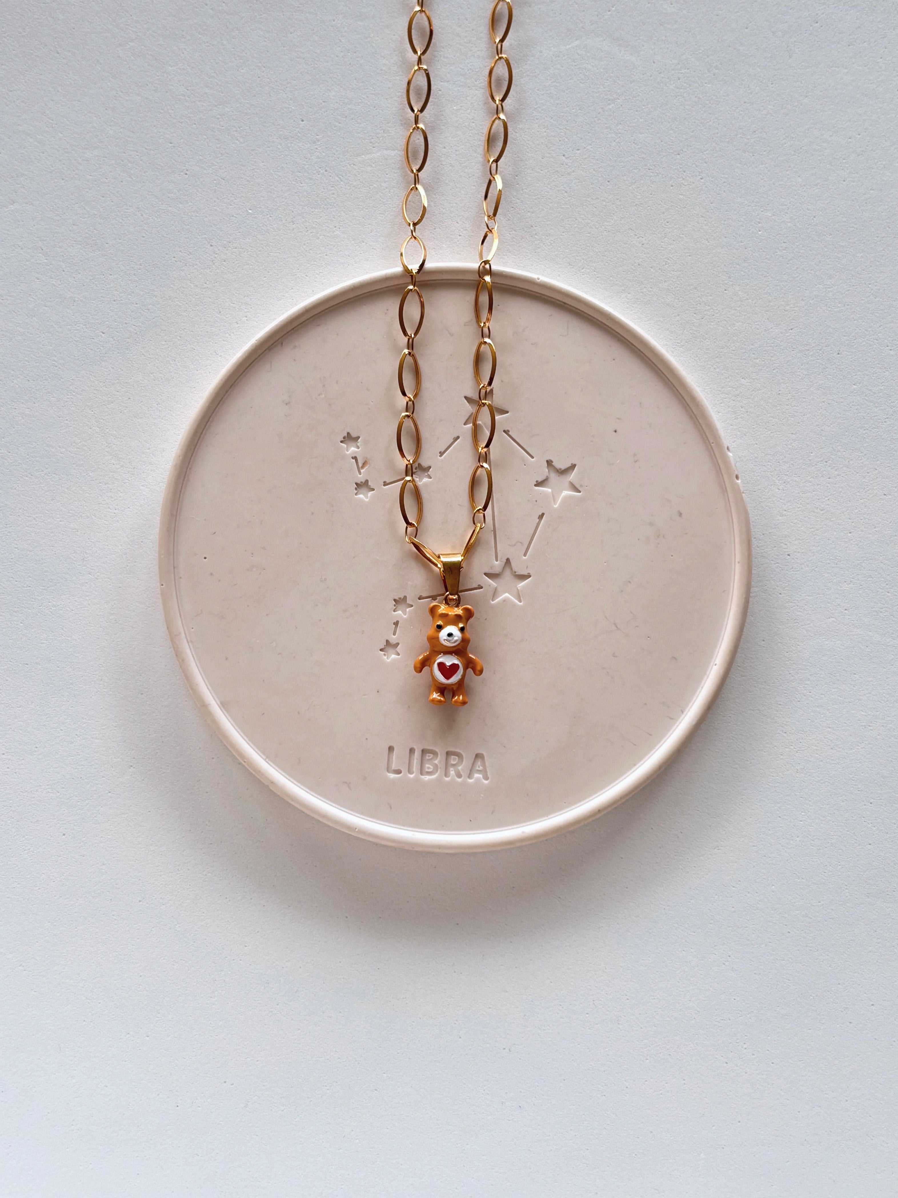 Un dolce orsetto romantico, con piccolo cuoricino smaltato sul petto e posto su catenina in acciaio inossidabile color oro.