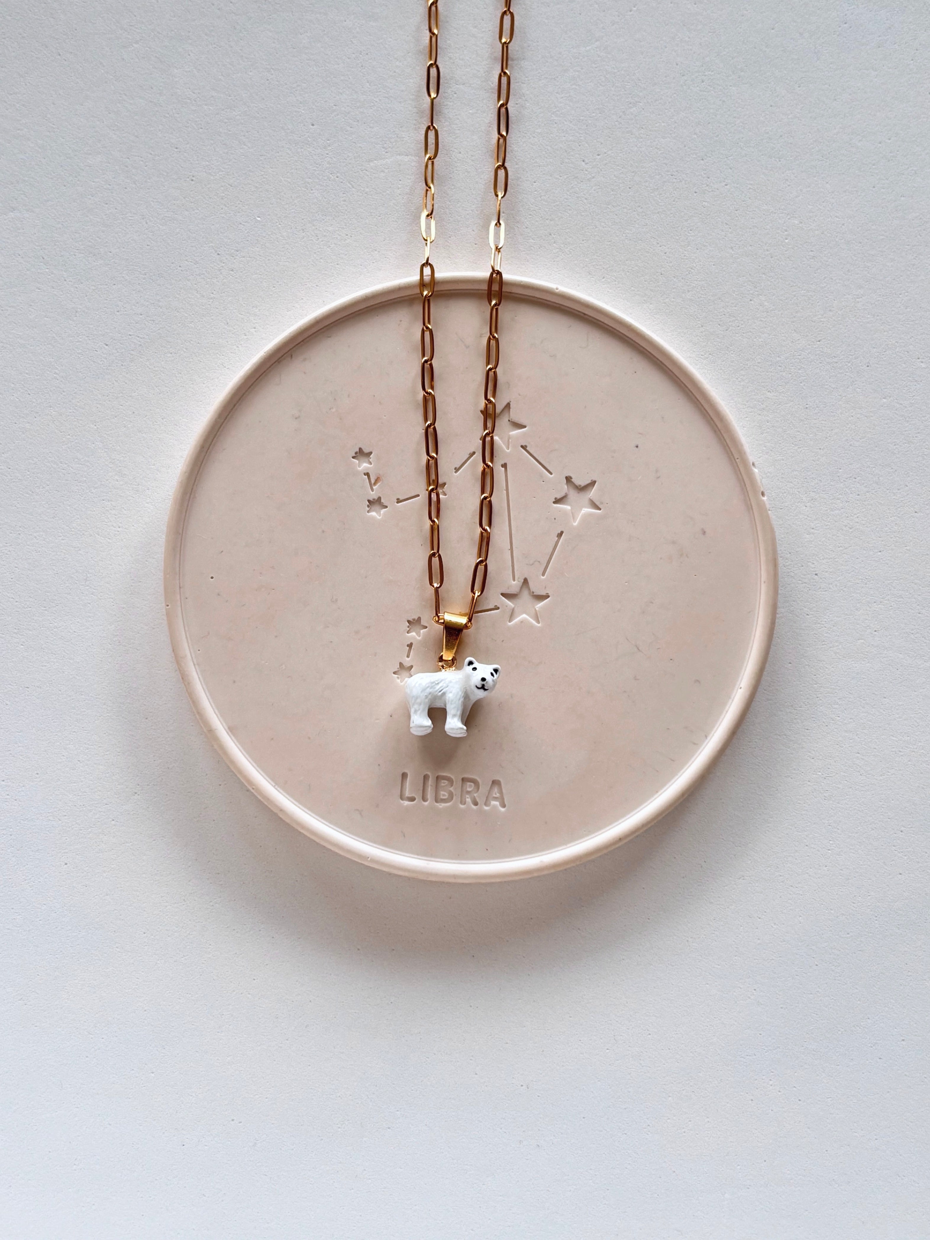 Sembra sbucato direttamente da una montagna innevata, questo piccolo orso polare, realizzato in ottone smaltato, su catenina in acciaio inossidabile color oro.