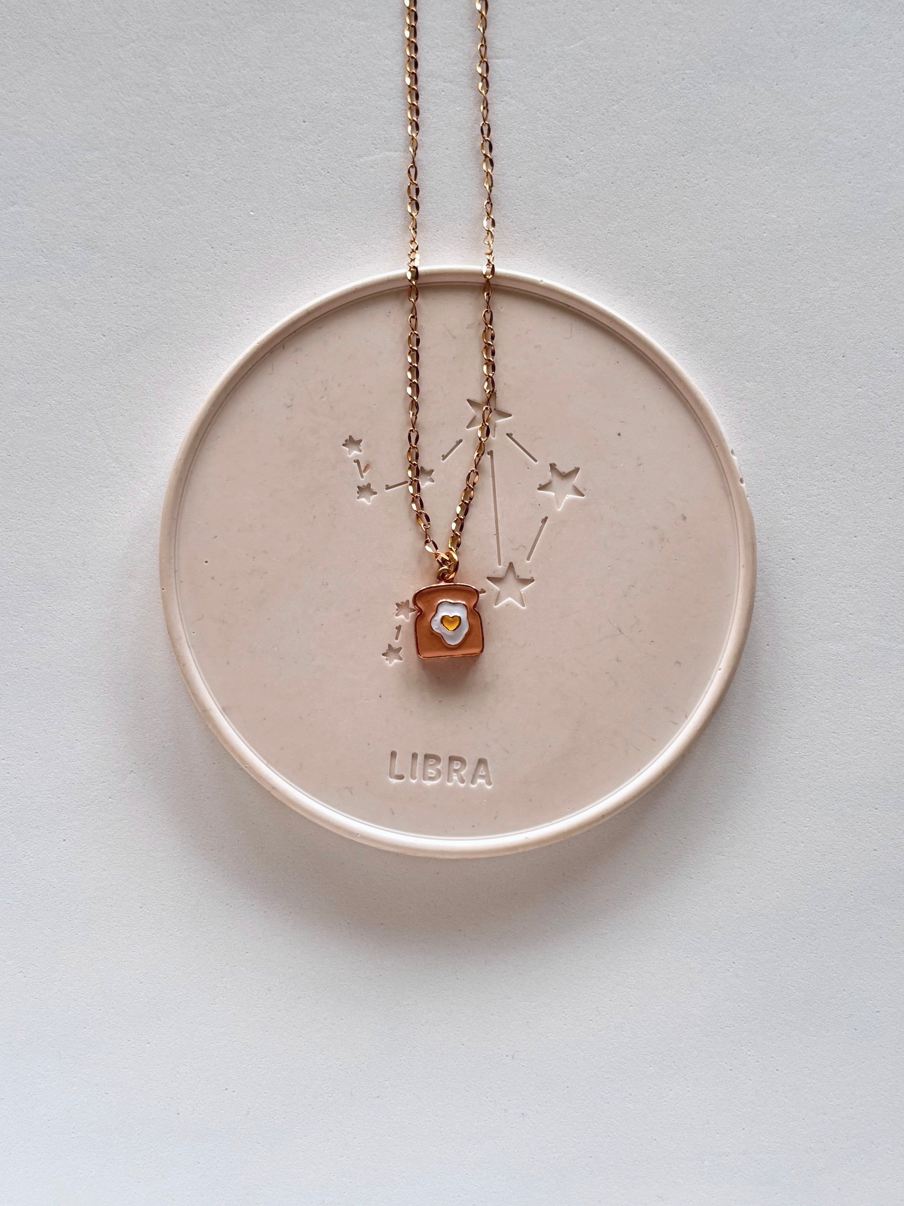 Charms smaltato e catenina in acciaio inossidabile color oro.