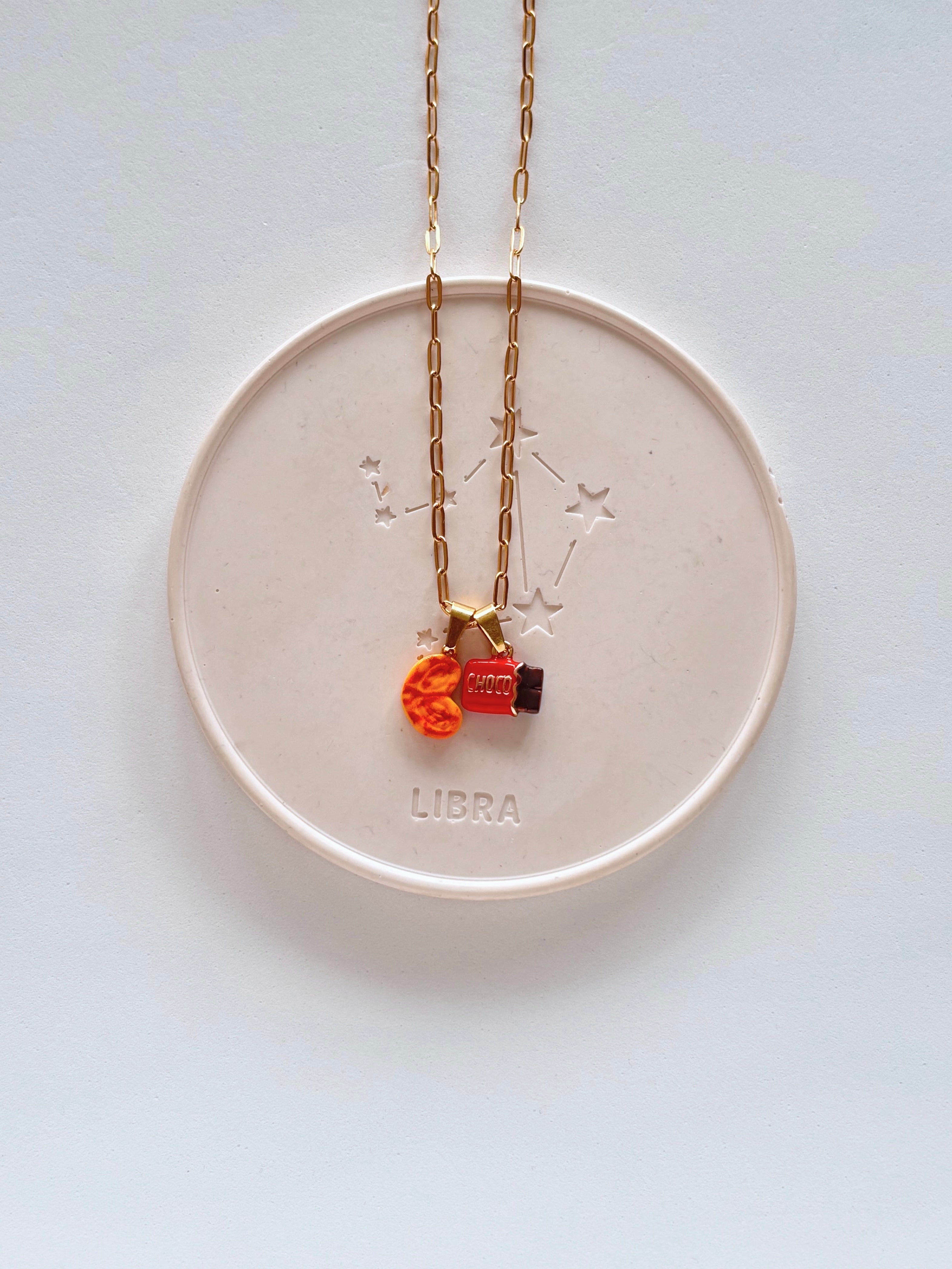 I charms sono smaltati e la catenina è in acciaio color oro.