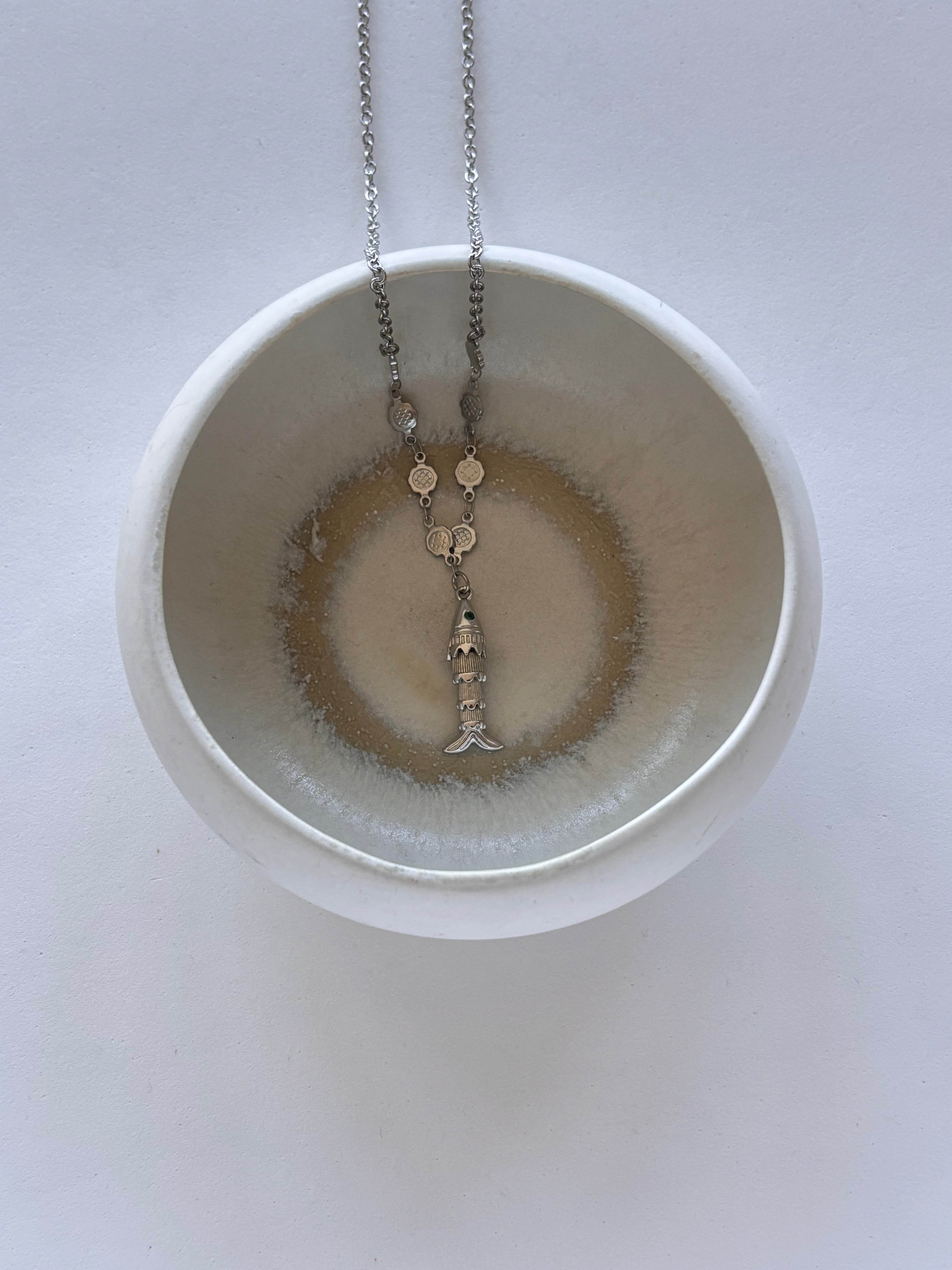 Il tutto su una catenina in acciaio inossidabile color argento.