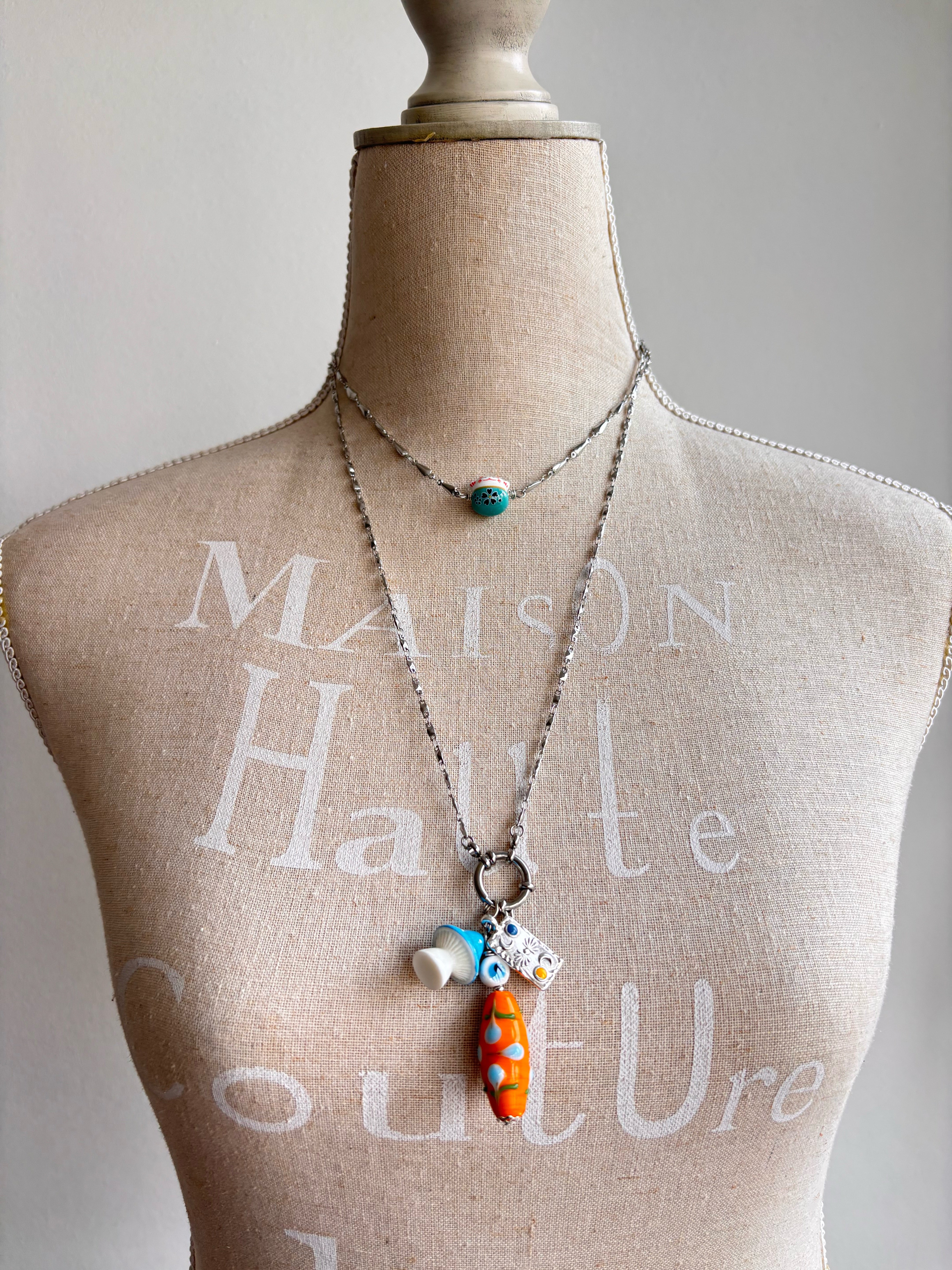 Collana Amuleto Mono-tono dove il colore protagonista è l’arancio mixato al turchese.