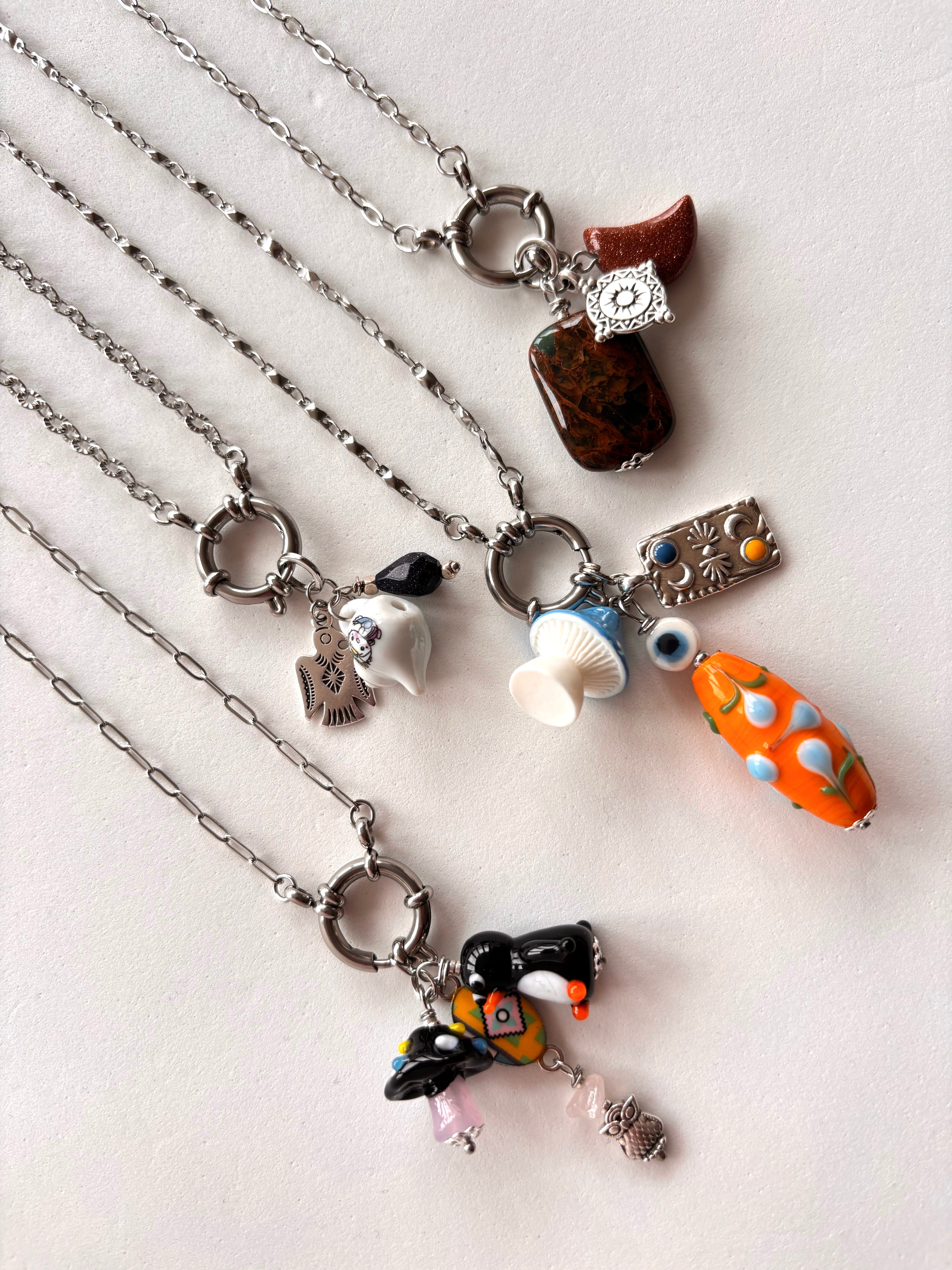Le collane Amuleto mono-tono sono gioiello pezzi unici speciali, impossibile da riprodurre nuovamente, in quanto le componenti impiegate nella realizzazione provengono spesso da paesi lontani e/o dal mondo vintage.