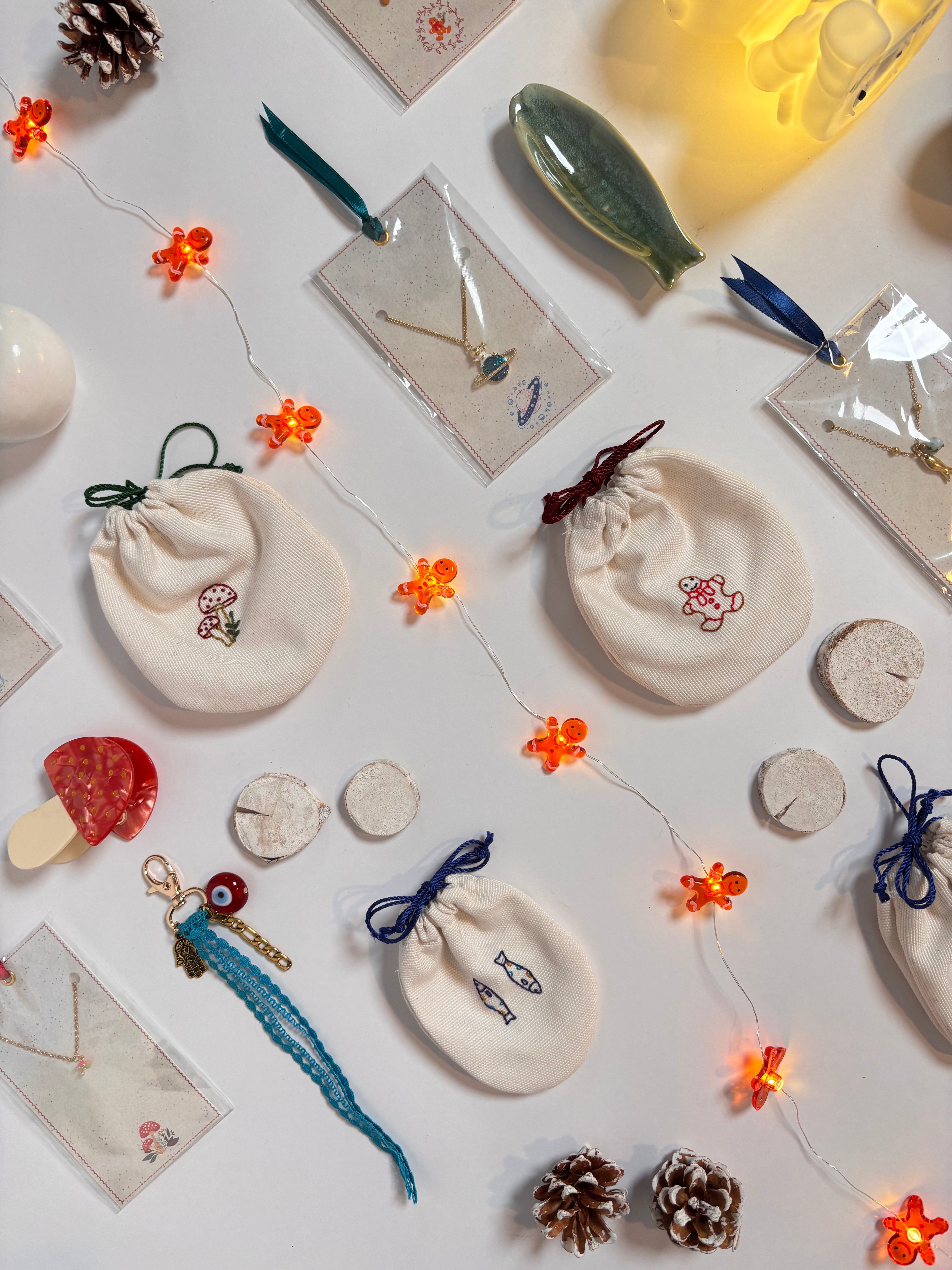 - una piccola pouch cucita e ricamata a mano da Sabrina di Ricami di Sabri che, grazie alla sua creatività innata, sembra quasi dare vita al disegno