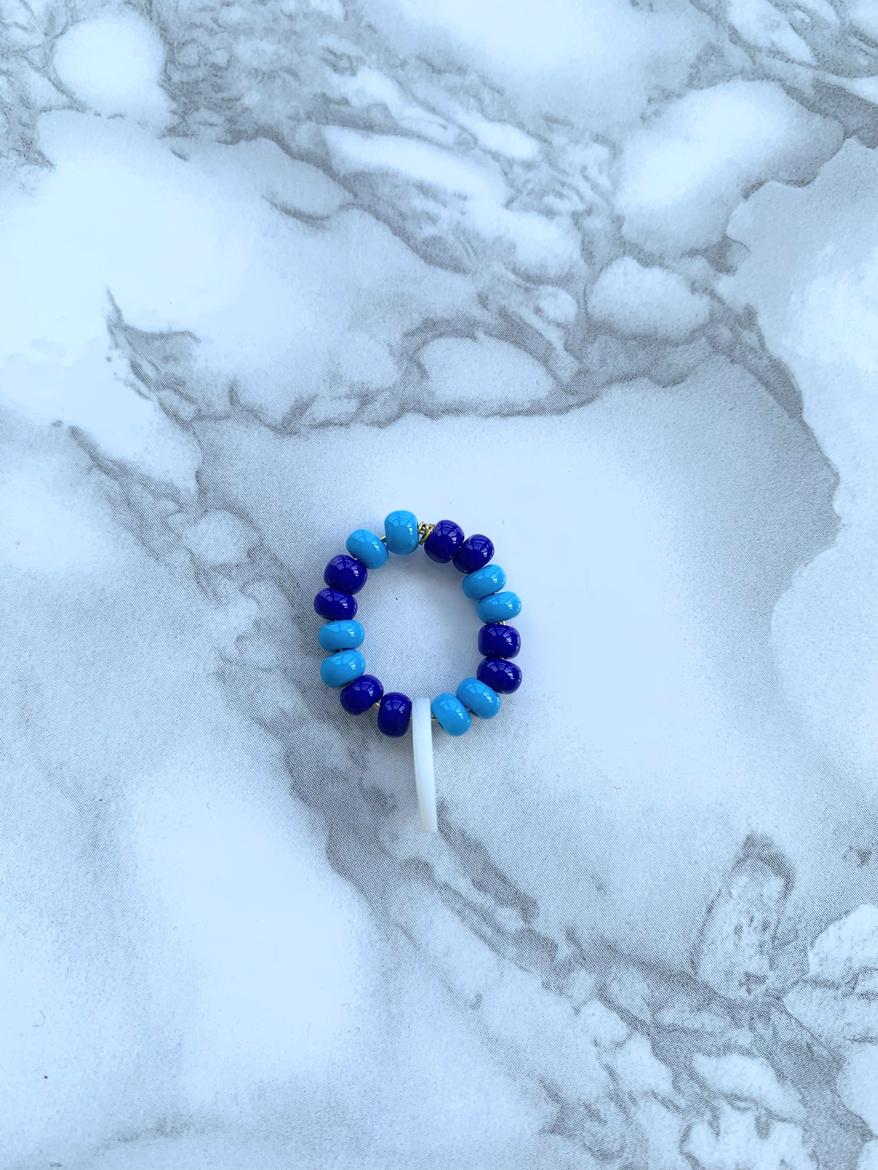Charm artigianale, composto da perline in conteria di vetro e goccia in conchiglia levigata.