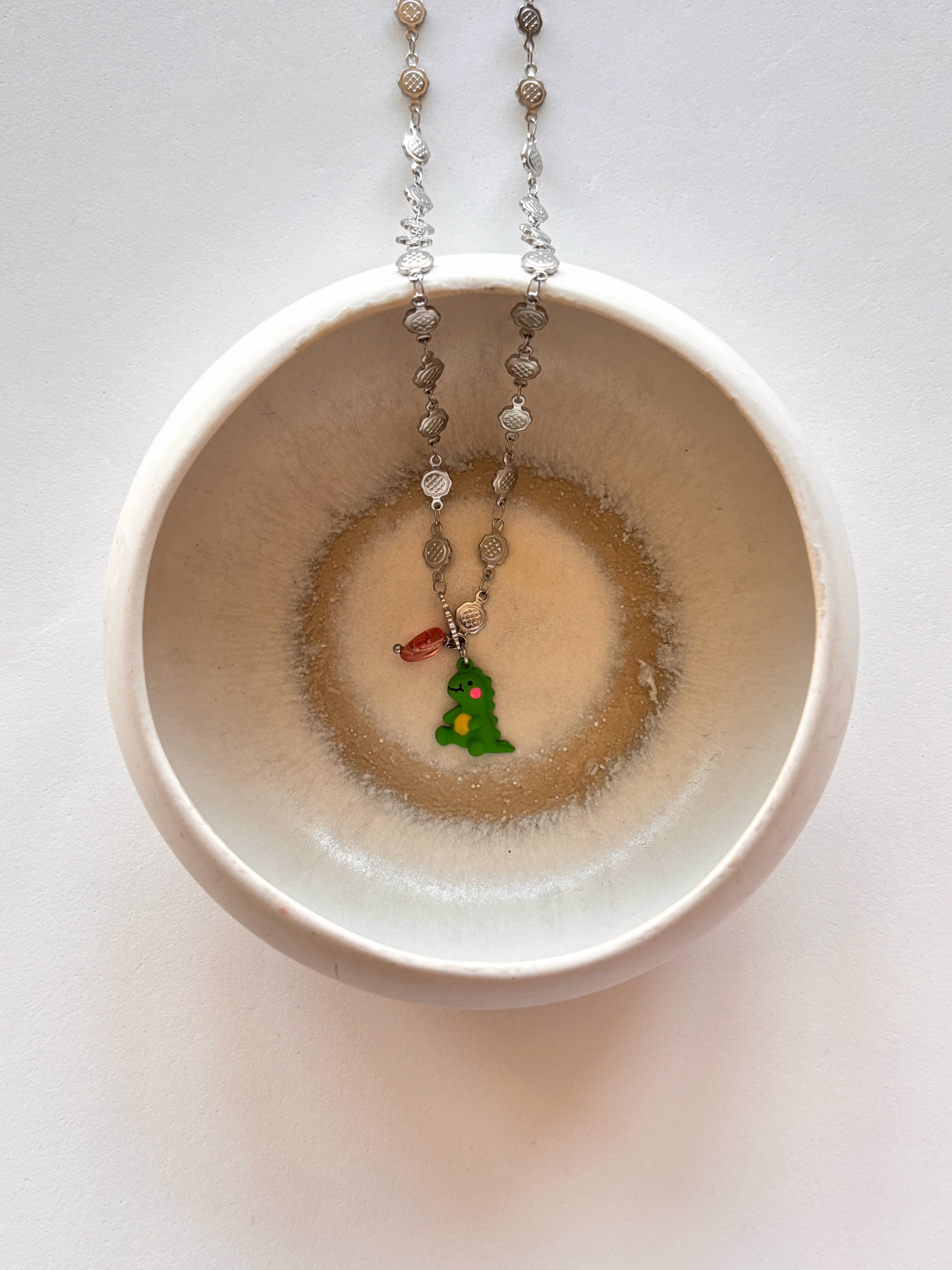 Un girocollo per tornare un pò bambine, grazie al dinosauro effetto gommato al centro di questo girocollo.