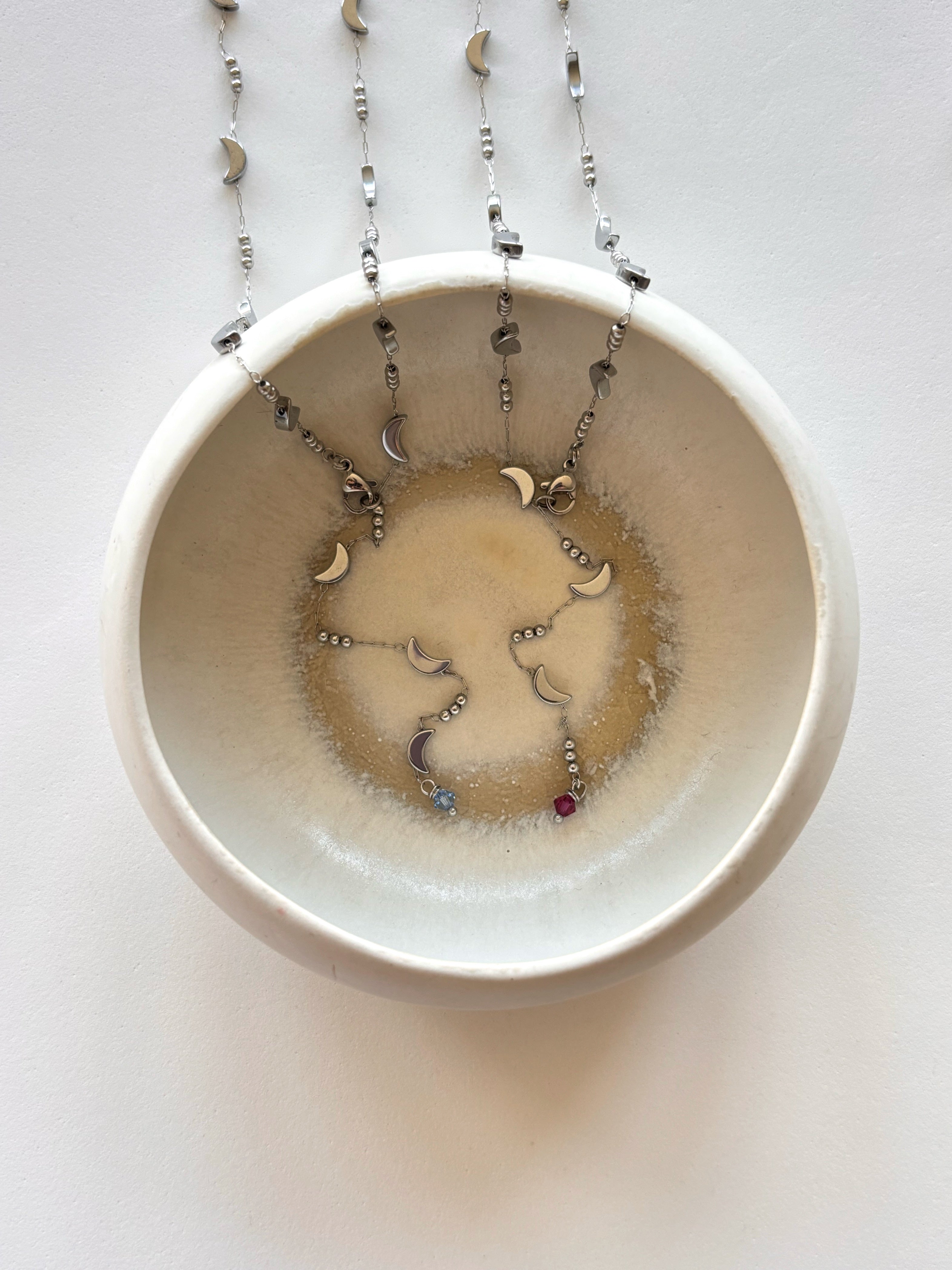 In questo caso il gioiello è composto da una catenella sottile con piccole mezzelune e cristallo Swarovski sul fondo.