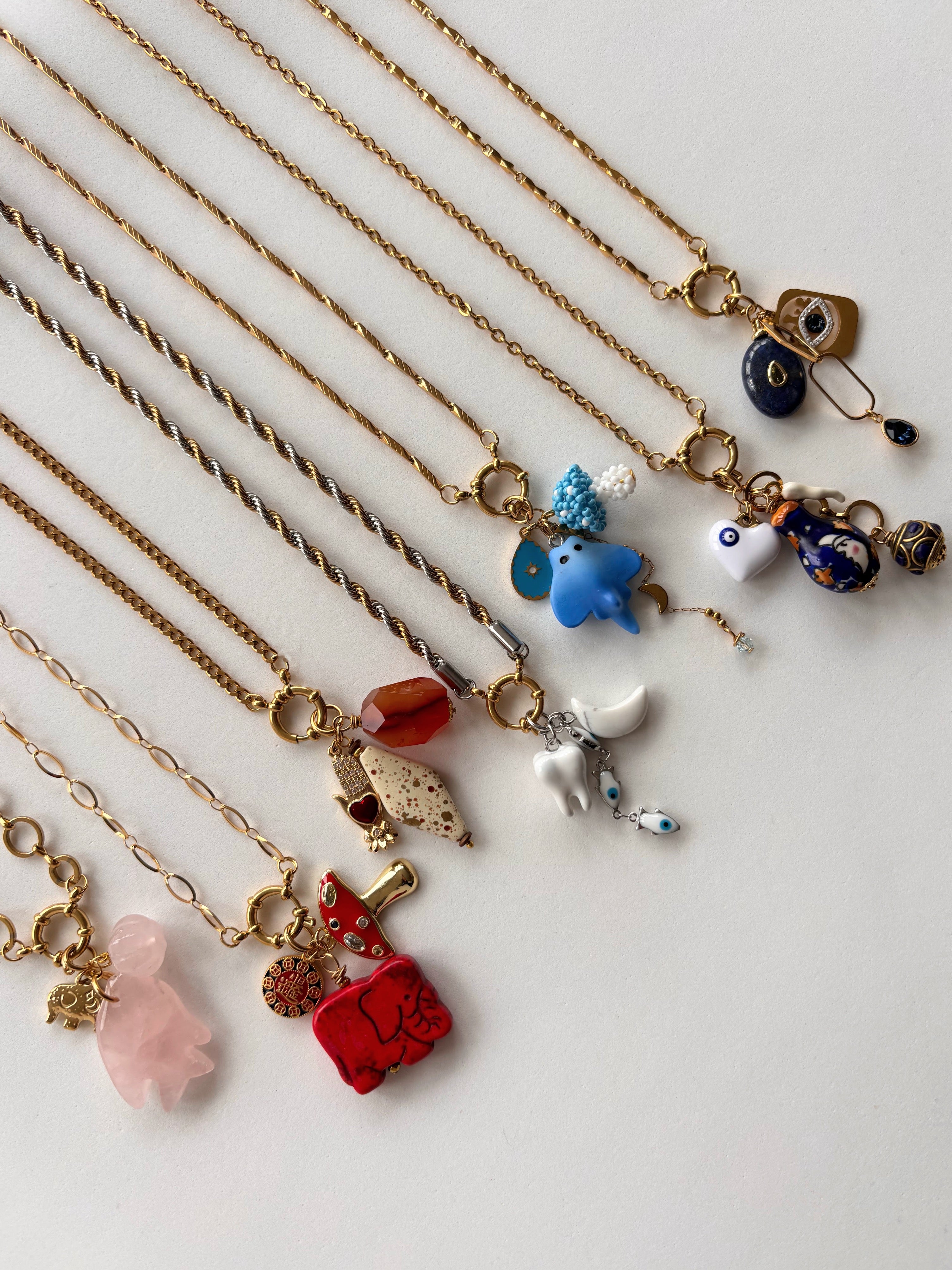Le collane Amuleto mono-tono sono gioiello pezzi unici speciali, impossibile da riprodurre nuovamente, in quanto le componenti impiegate nella realizzazione provengono spesso da paesi lontani e/o dal mondo vintage.