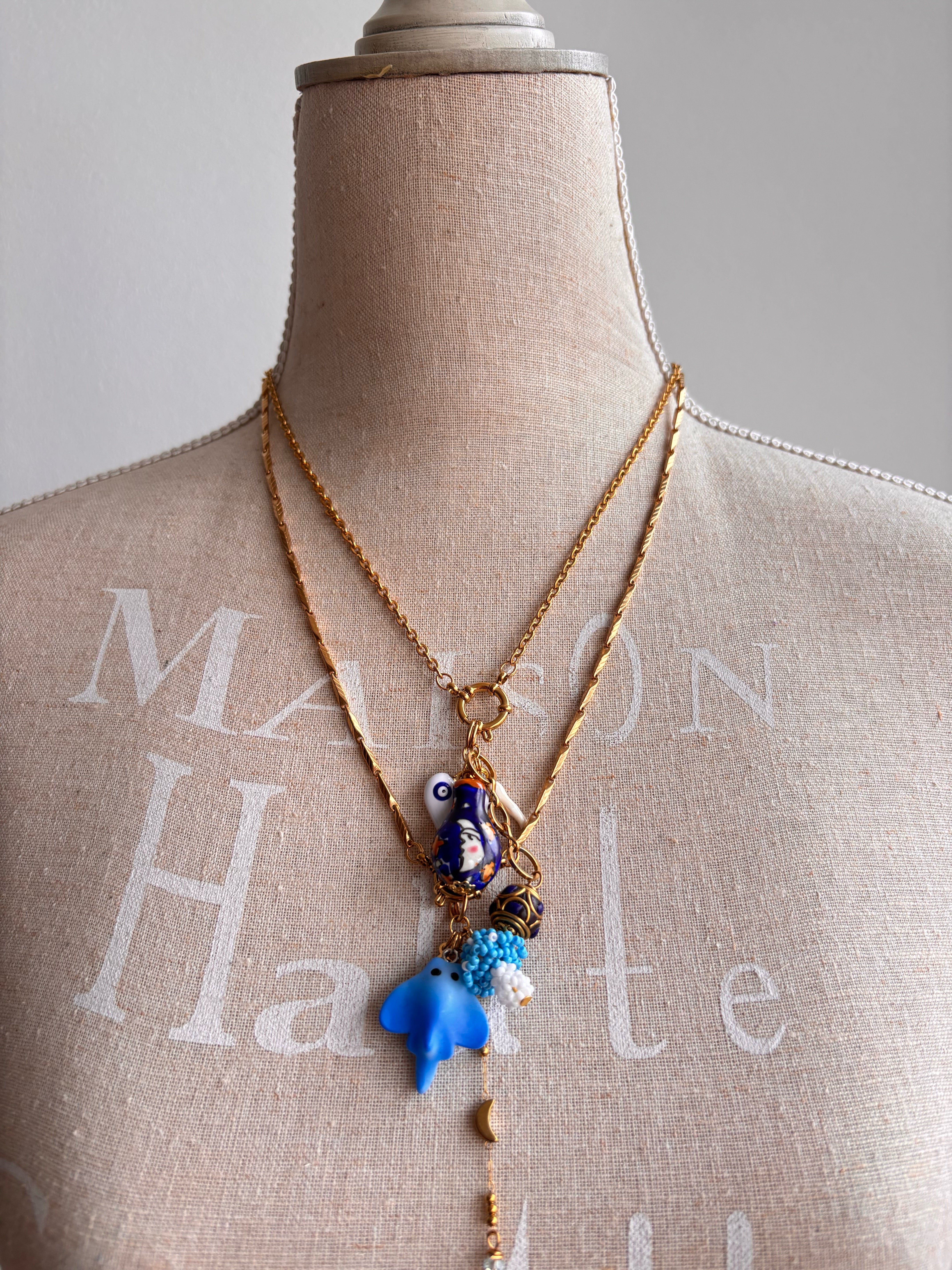 Collana Amuleto Mono-tono dove il colore protagonista è il blu notte e bianco latte.