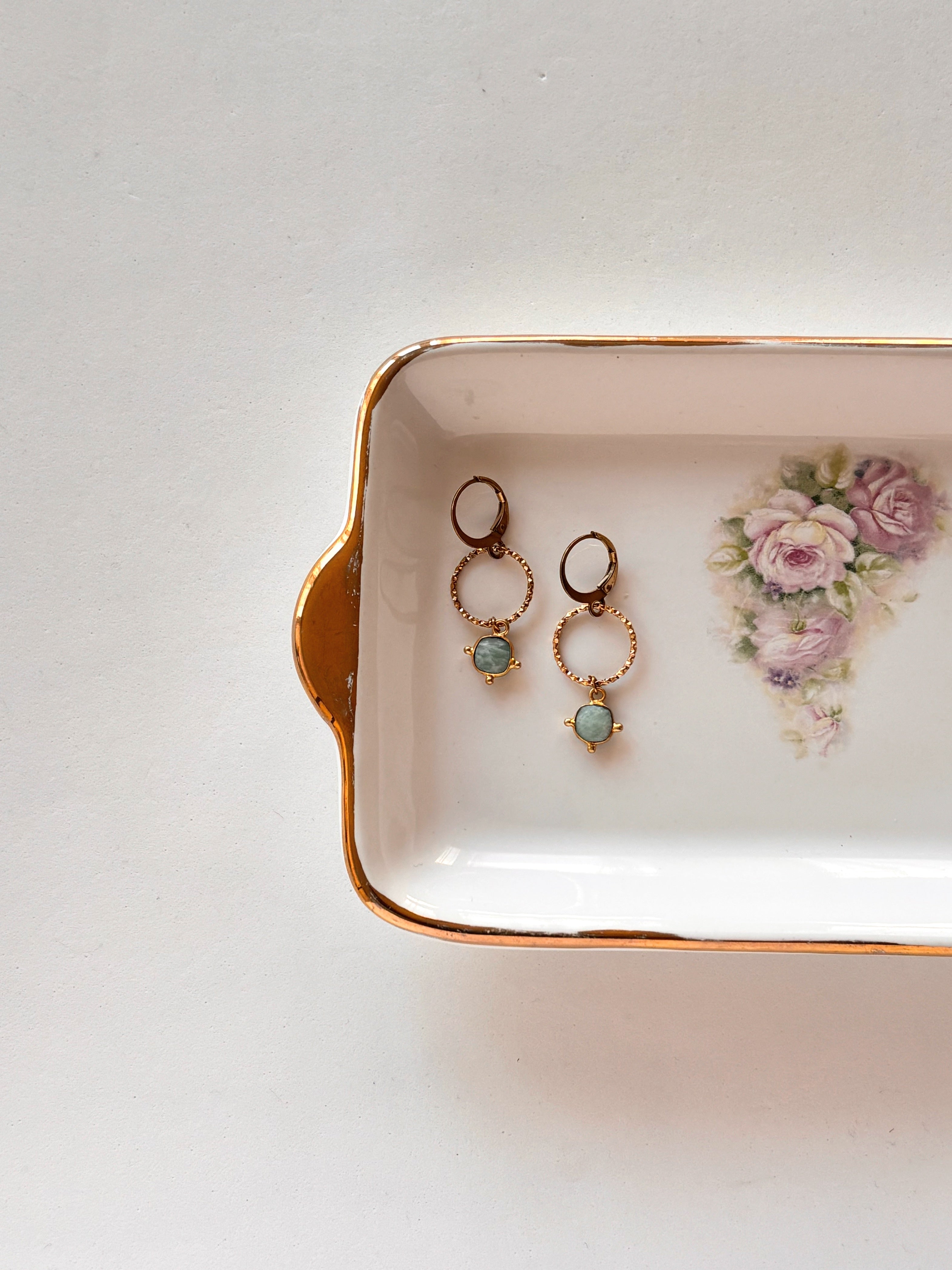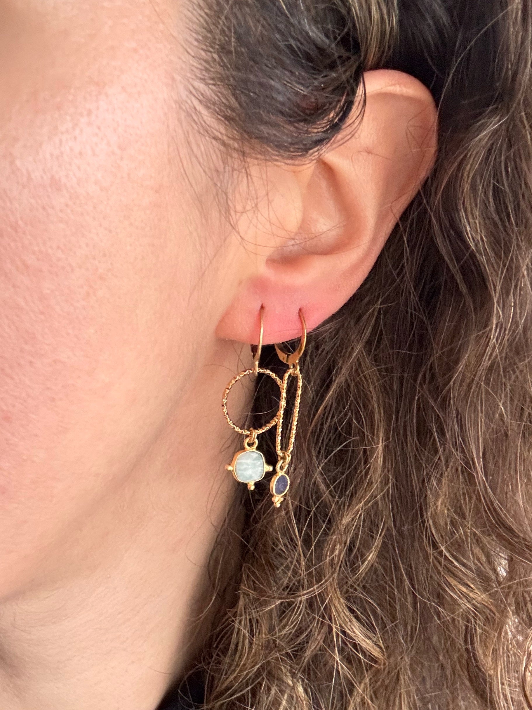 Un gioiello dal design essenziale e allo stesso tempo moderno, grazie al cerchietto zigrinato sul quale è inserita una pepita in Avventurina, pietra dell’equilibrio e della calma.