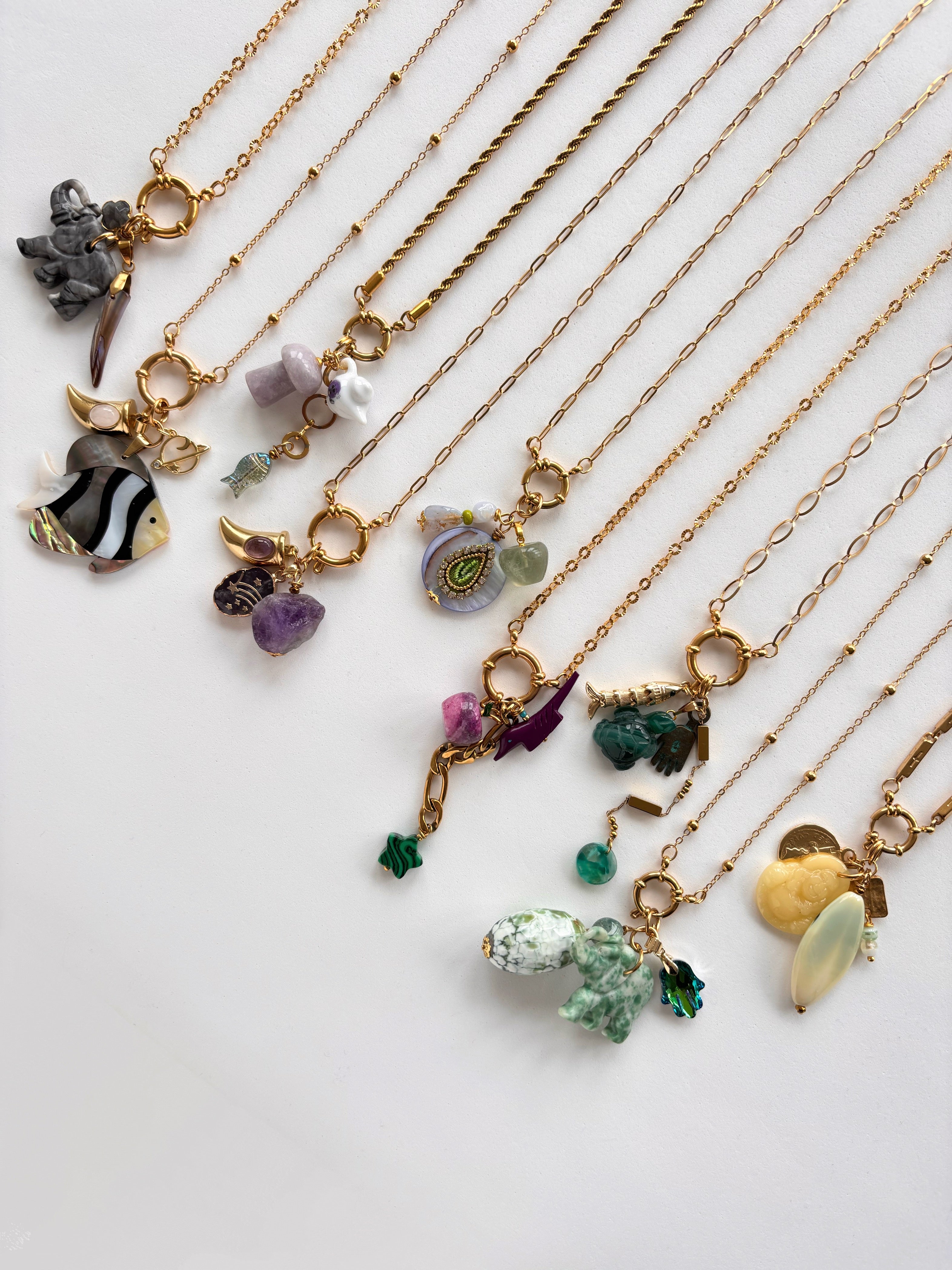 Le collane Amuleto mono-tono sono gioiello pezzi unici speciali, impossibile da riprodurre nuovamente, in quanto le componenti impiegate nella realizzazione provengono spesso da paesi lontani e/o dal mondo vintage.