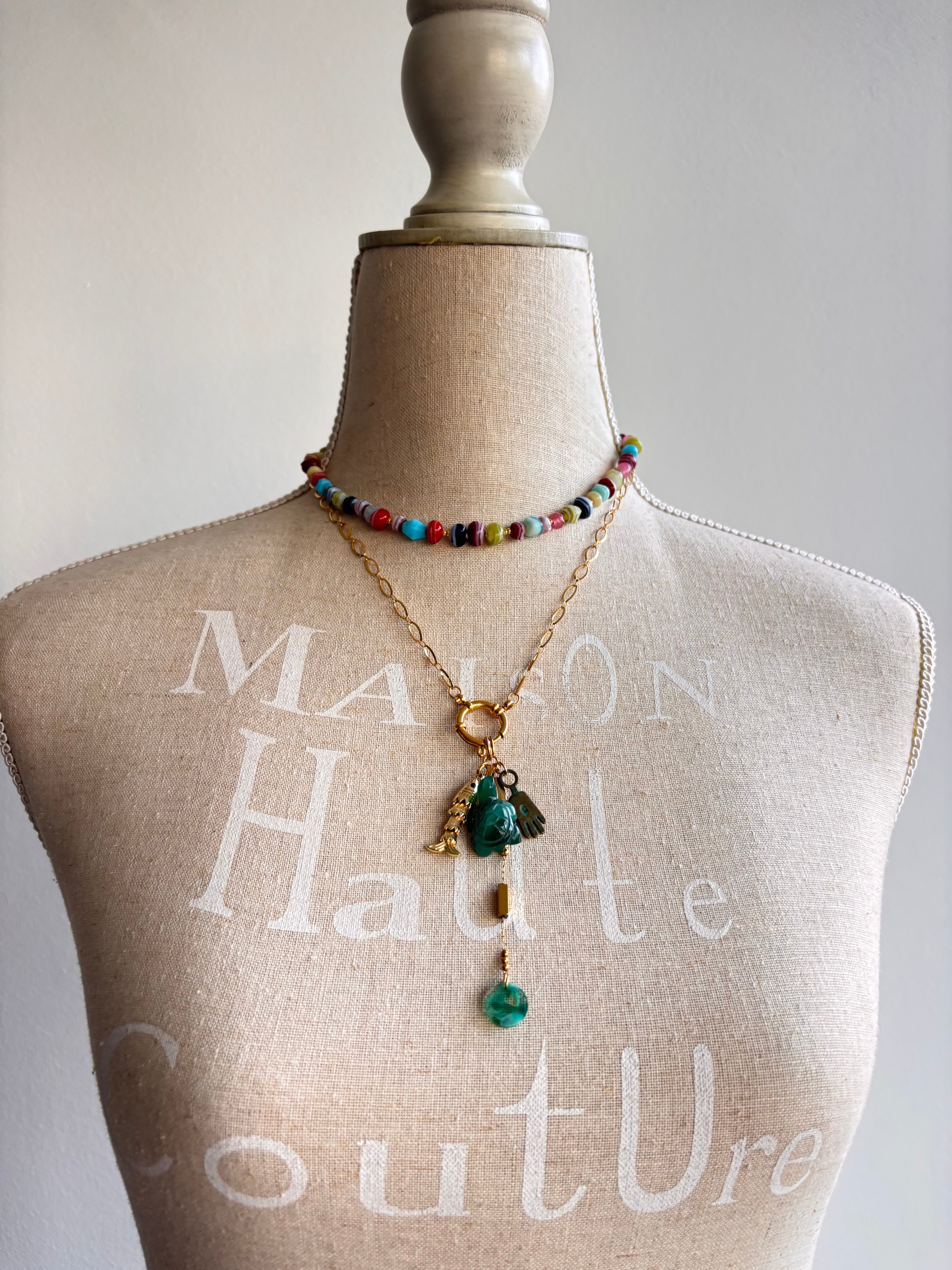 Collana Amuleto Mono-tono dove il colore protagonista è il verde petrolio.
