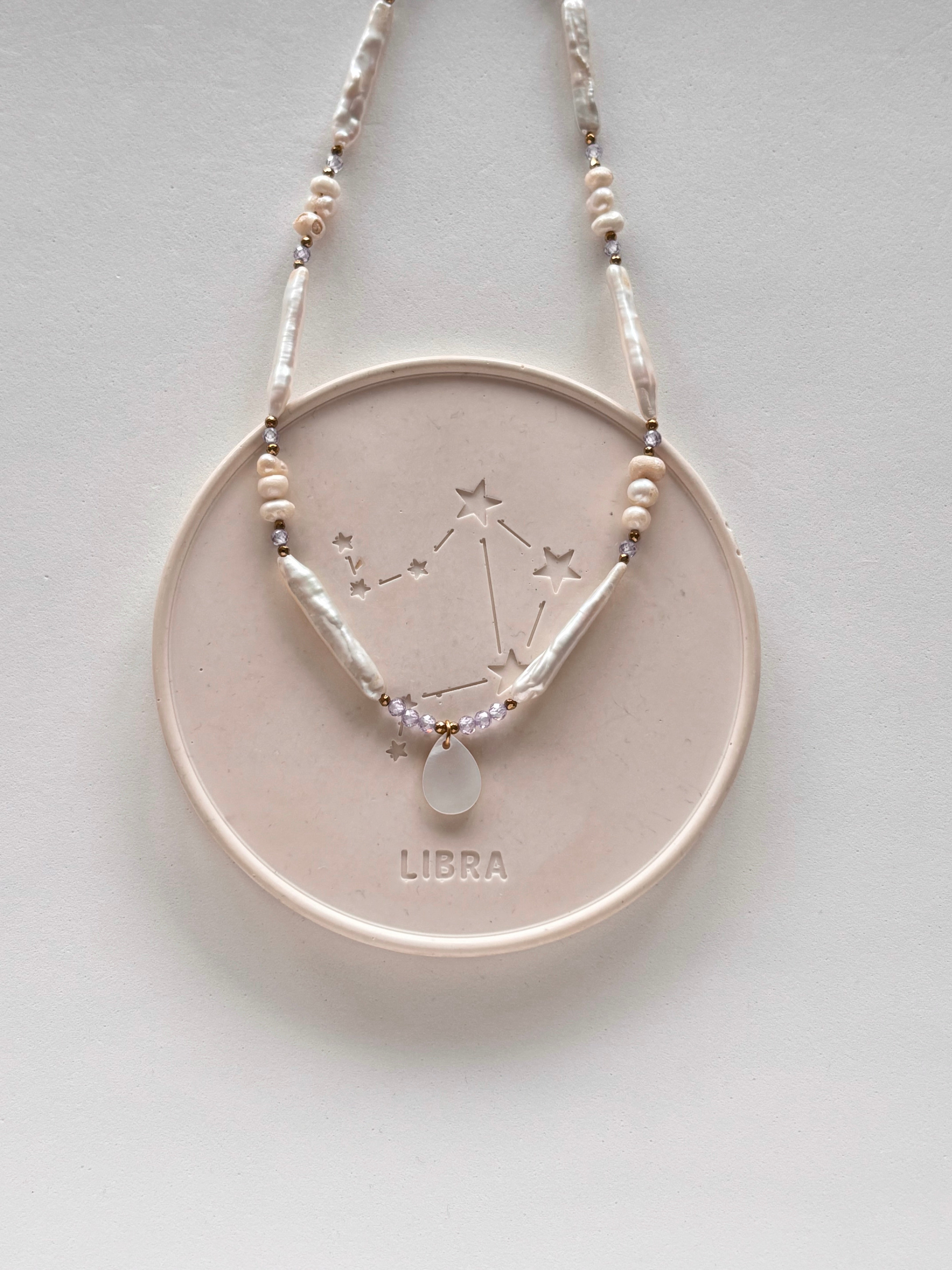 Dolcezza e raffinatezza: ecco come descriverei GLENDA, realizzato quasi interamente in perle naturali di fiume e mezzi cristalli.