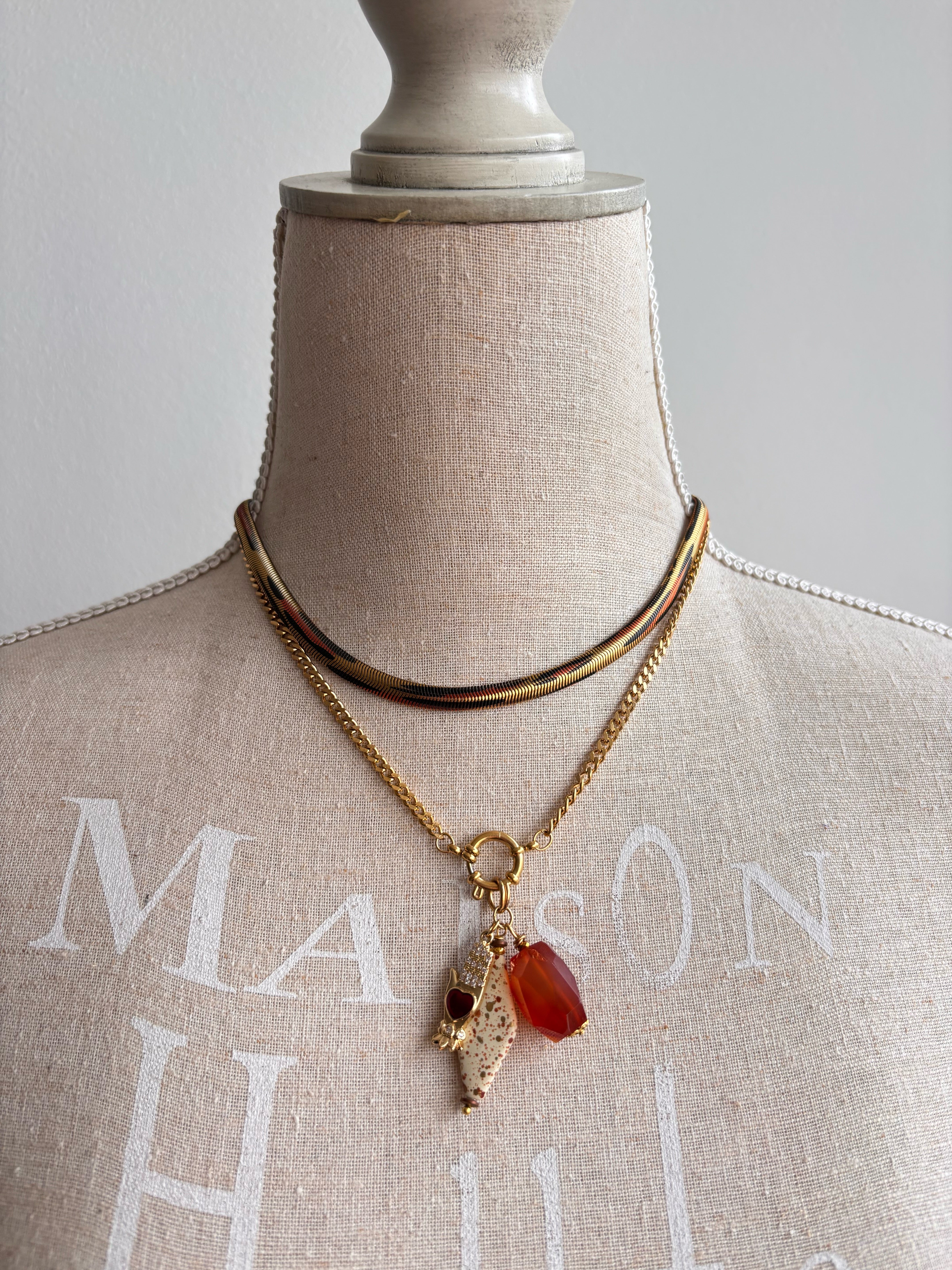 Collana Amuleto Mono-tono dove il colore protagonista è il rosso mattone.