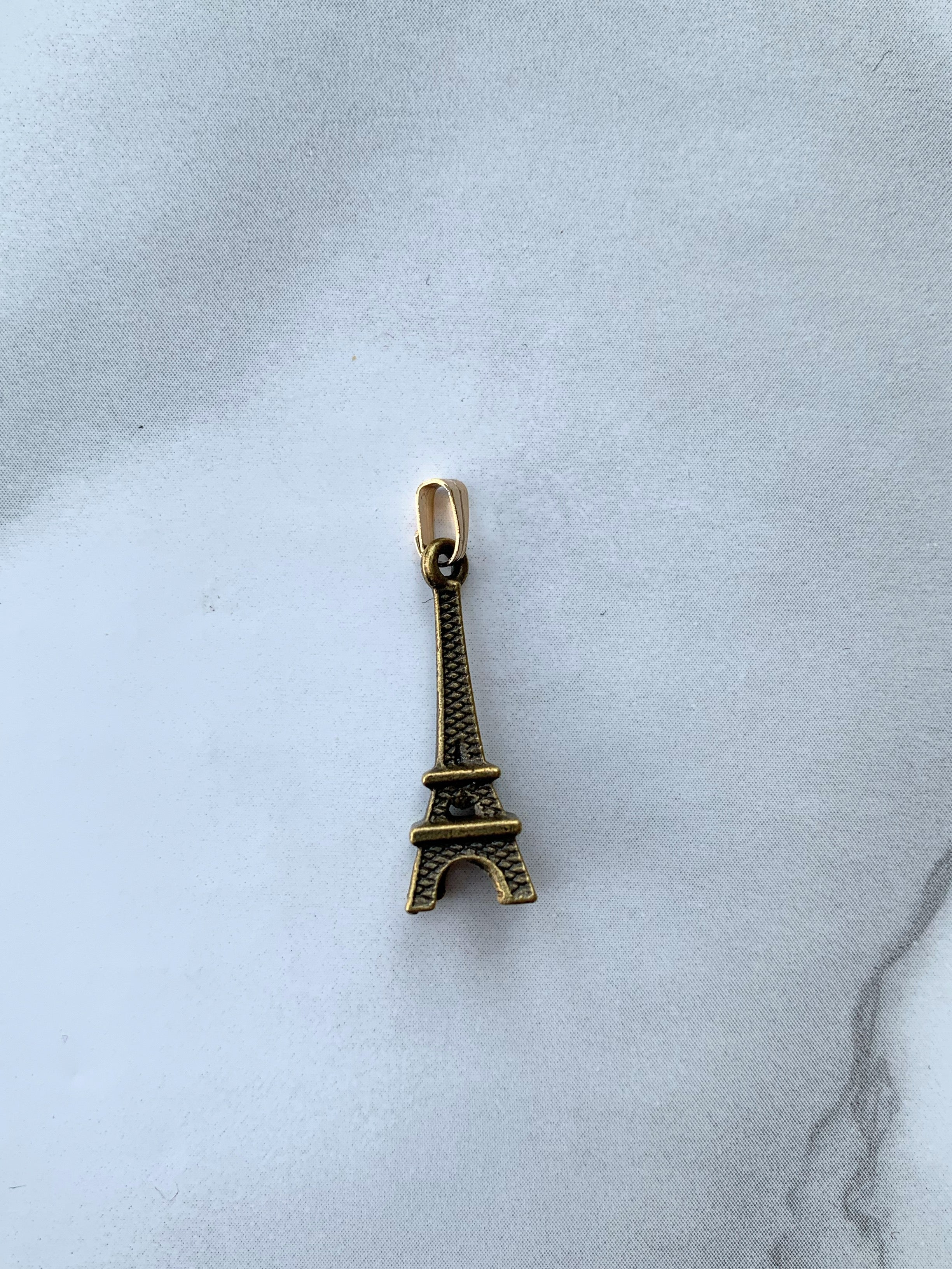 Ciondolo romantico, dalla forma iconica, in metallo bronzato effetto vintage ed anellino superiore color oro.