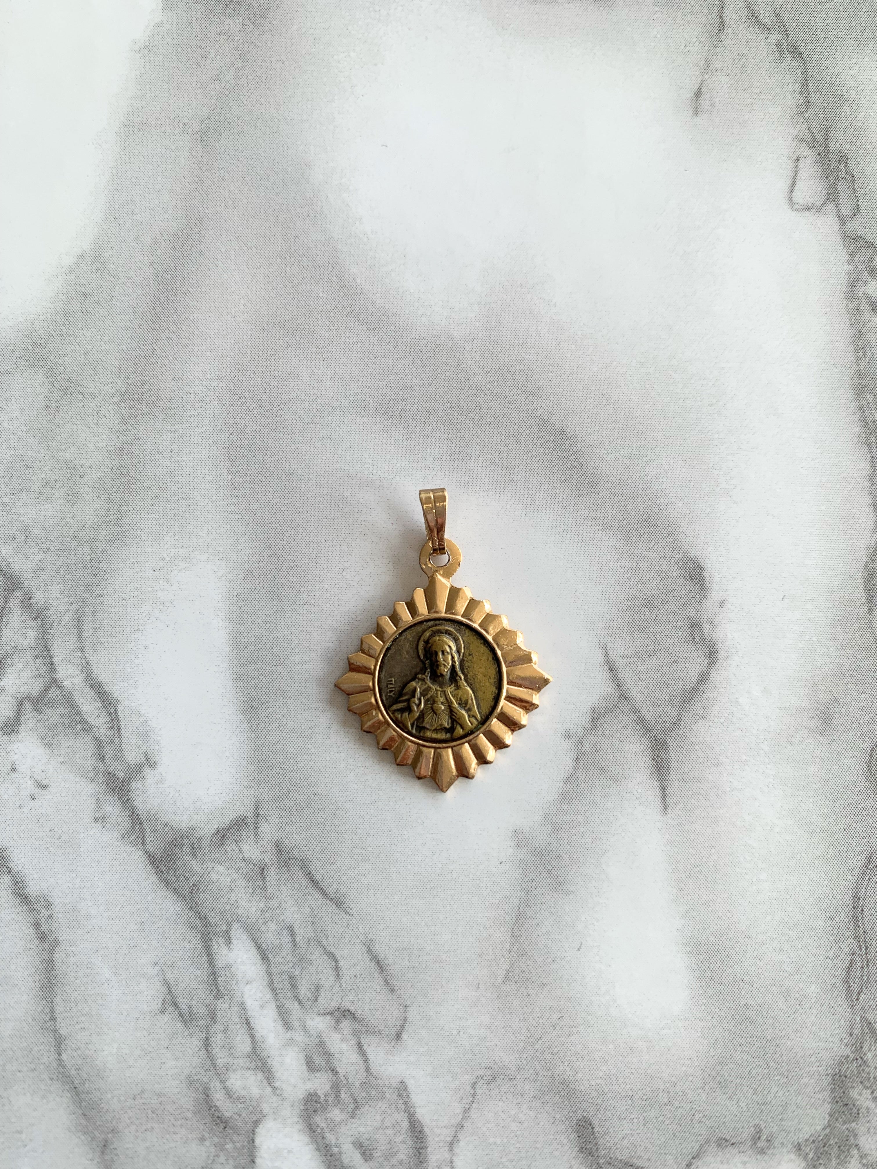 Ciondolo di origine vintage, trovato a Napoli, rappresentante un santino.