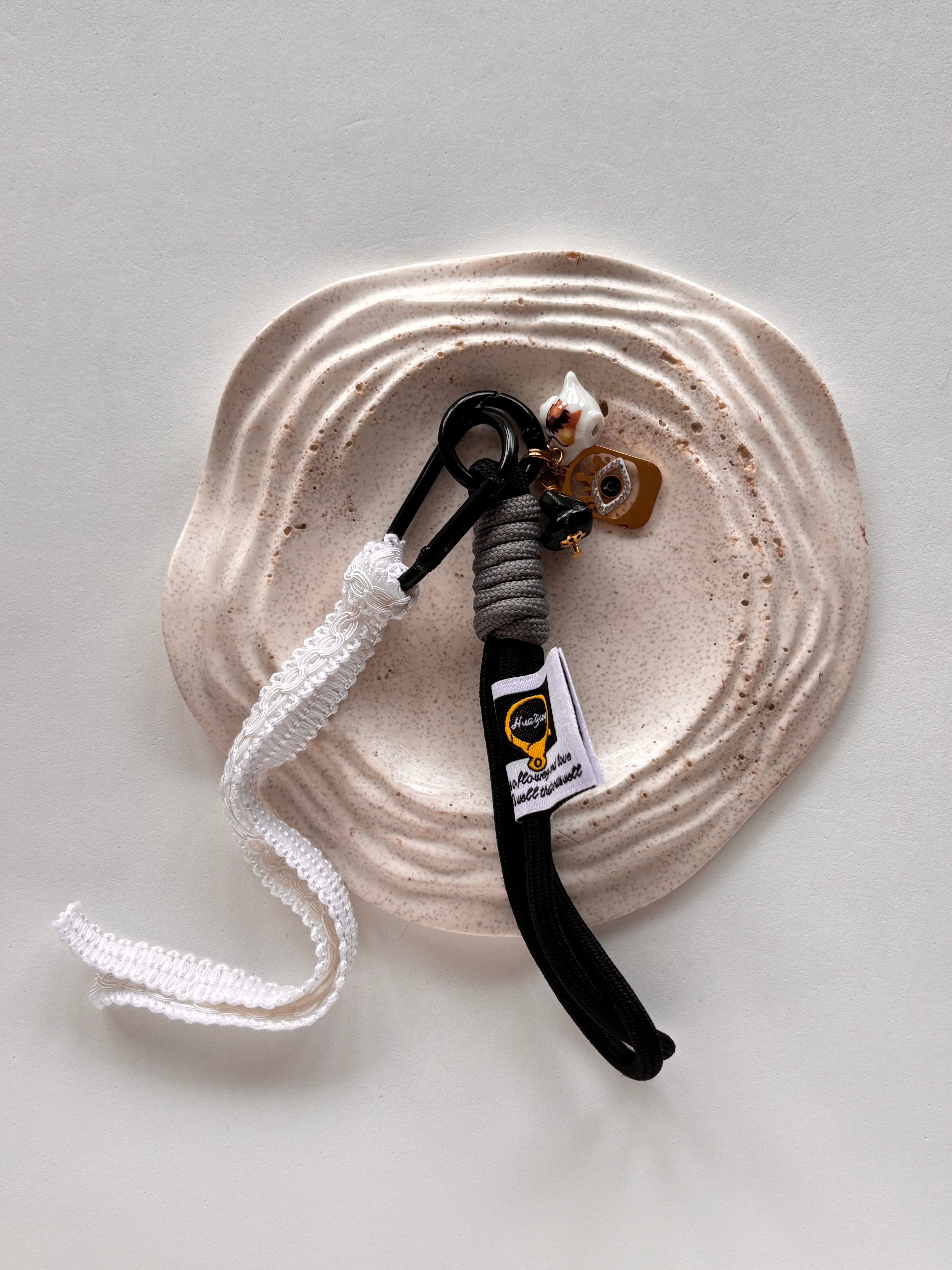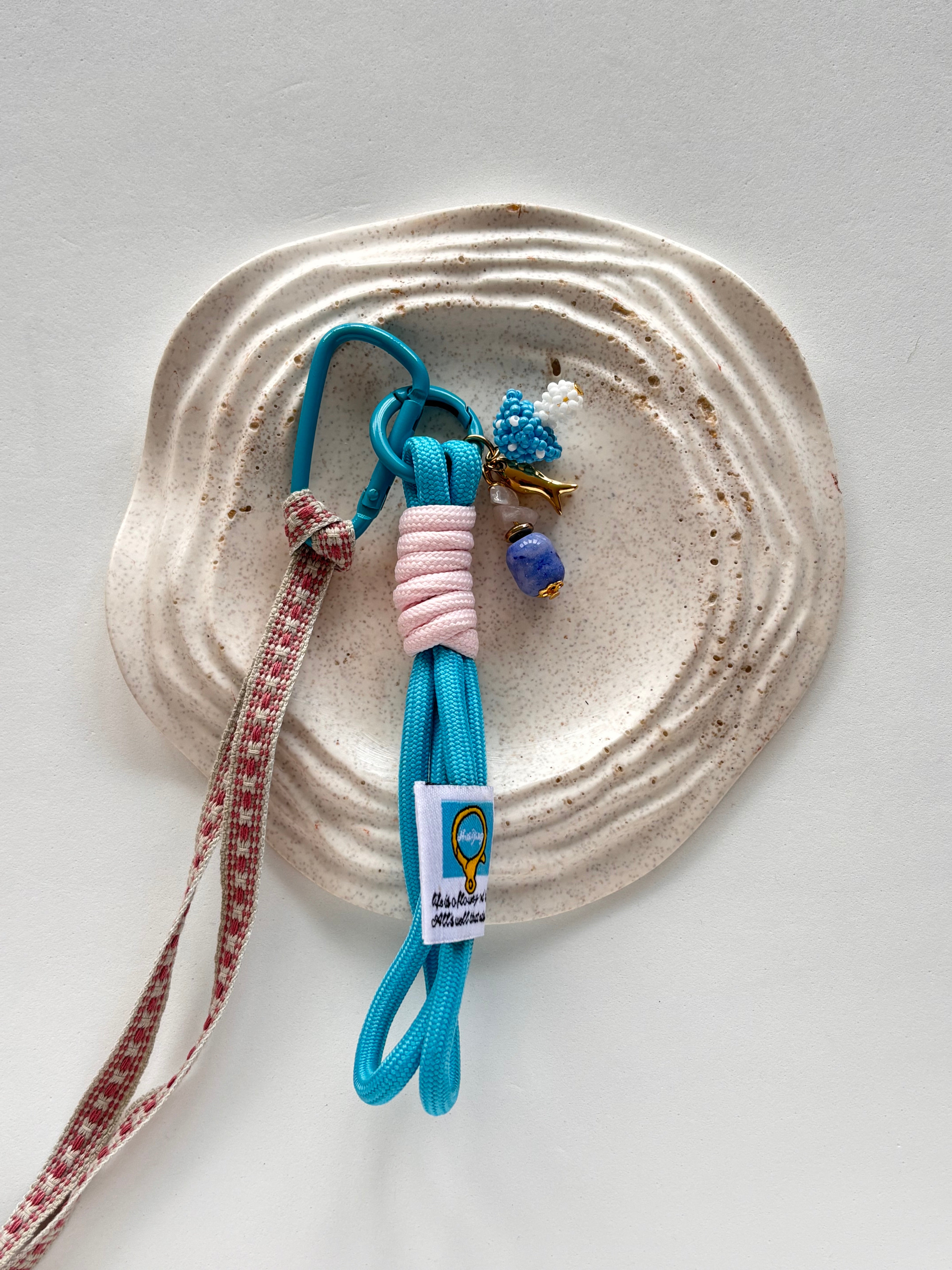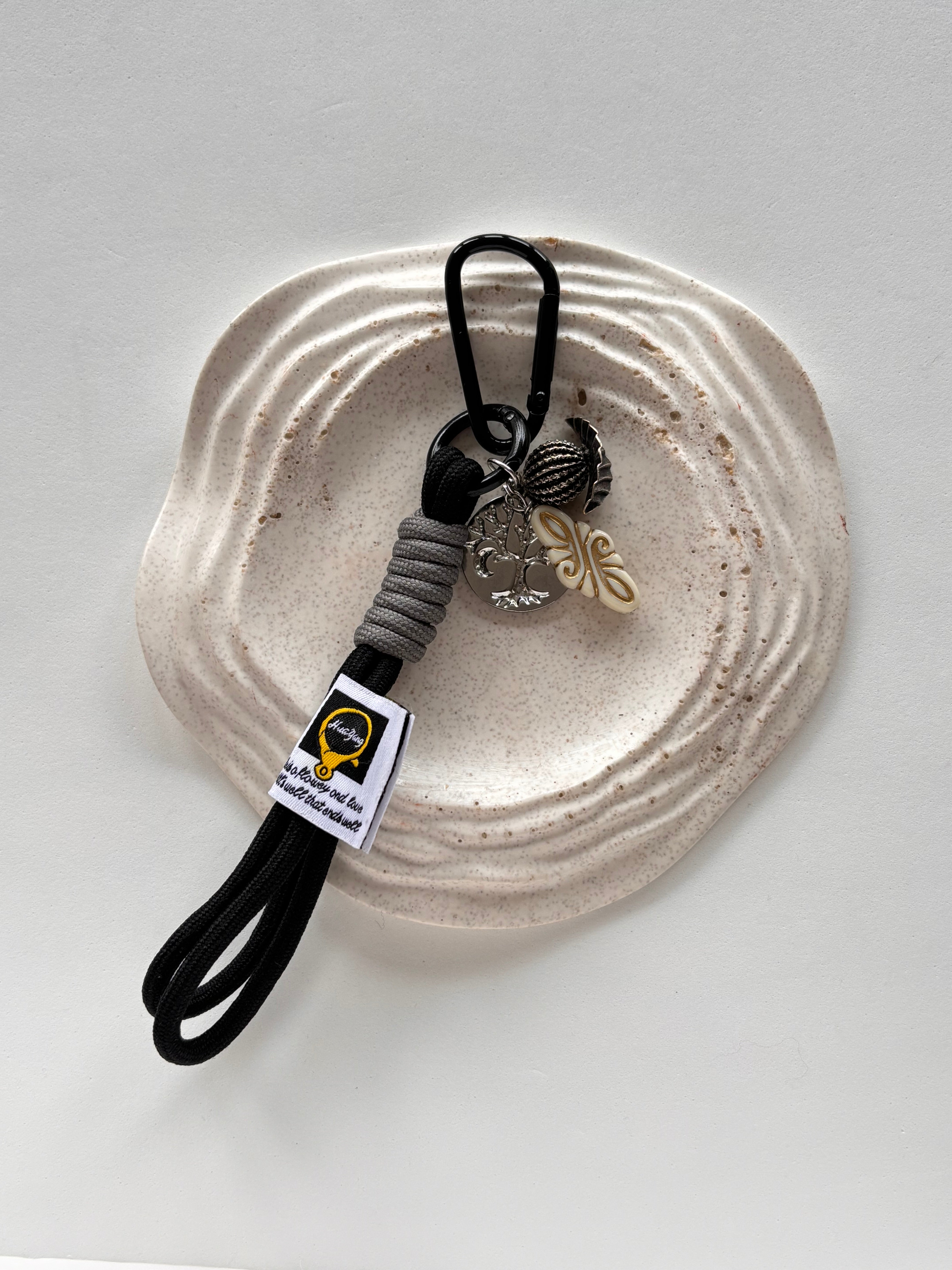 Ogni pezzo comprende due anellini portachiavi, nastro in tessuto e ciondoli diversi per tonalità di metallo e soggetti.