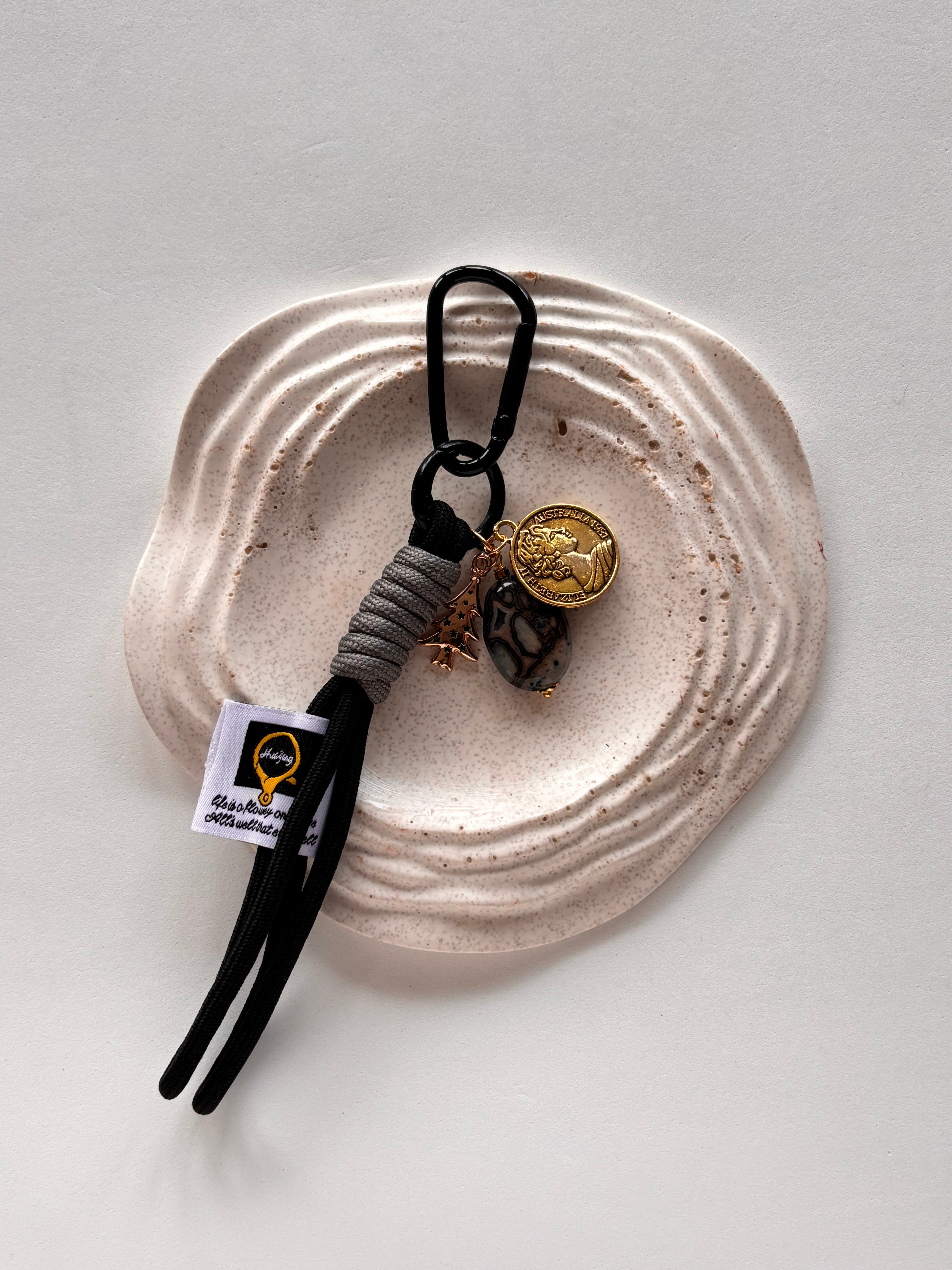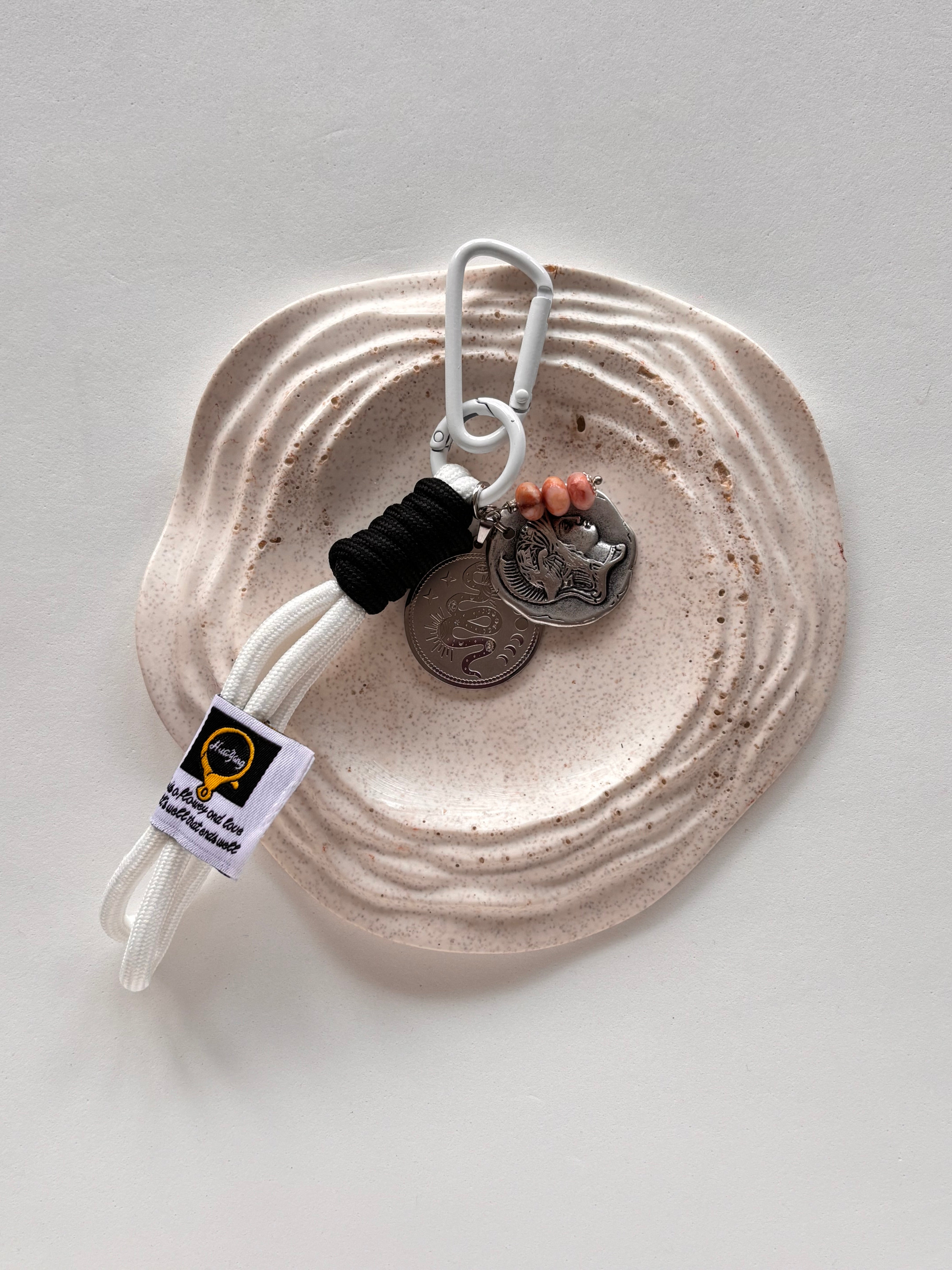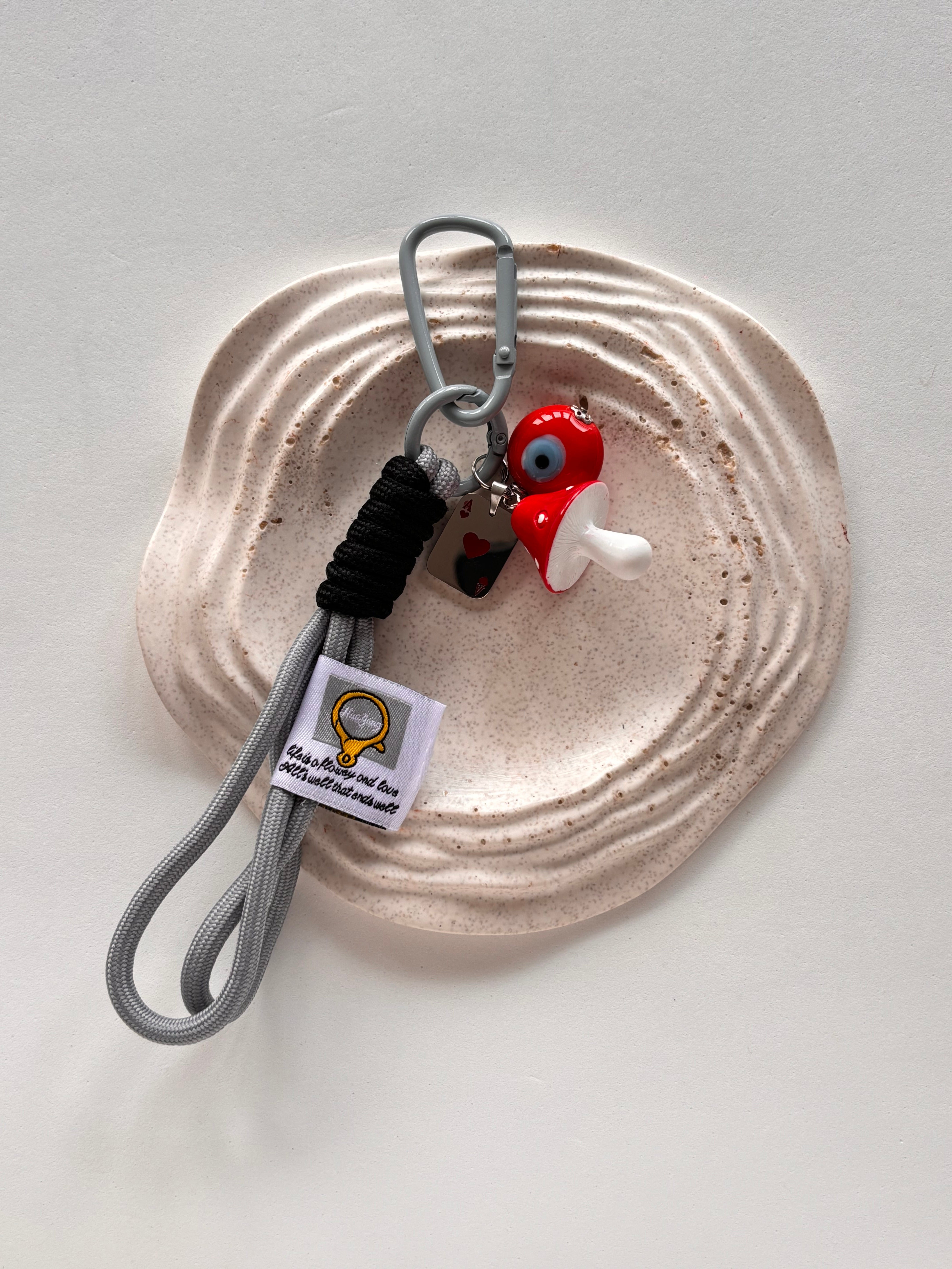 Ogni pezzo comprende due anellini portachiavi, nastro in tessuto e ciondoli diversi per tonalità di metallo e soggetti.